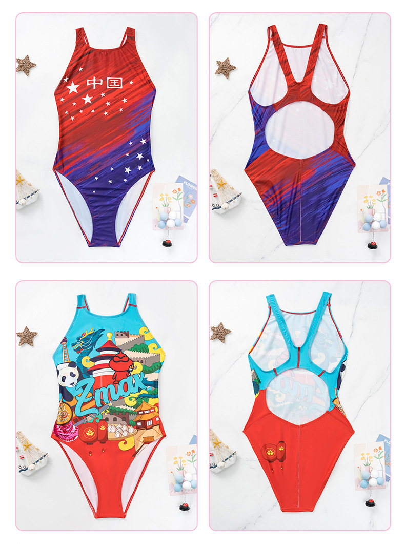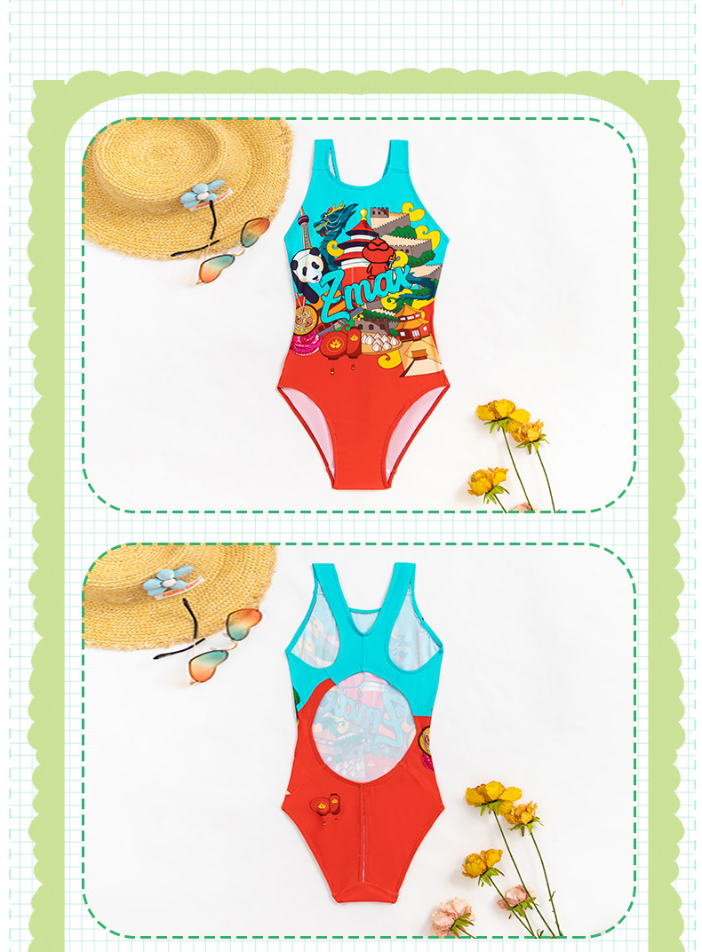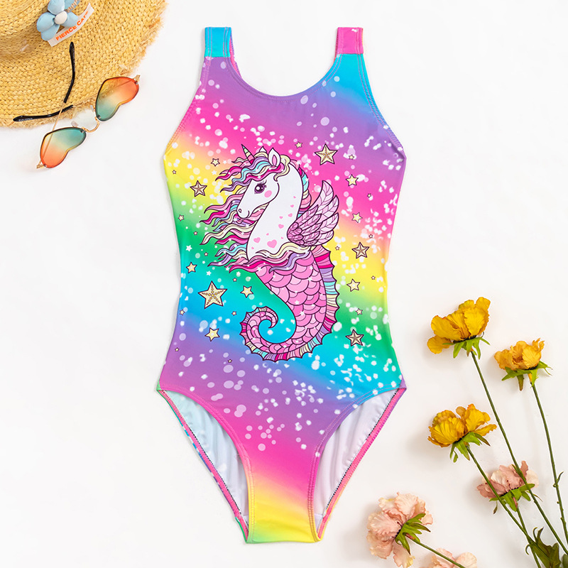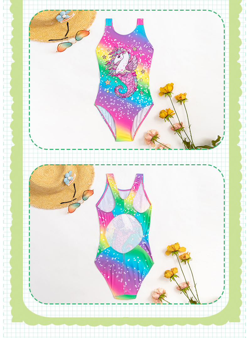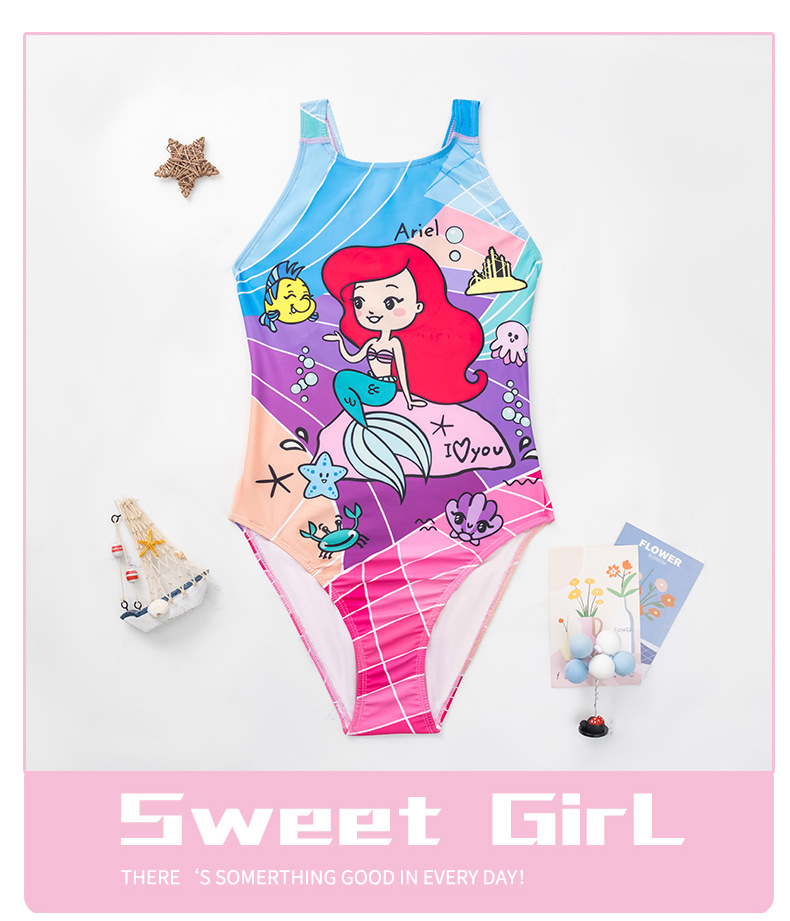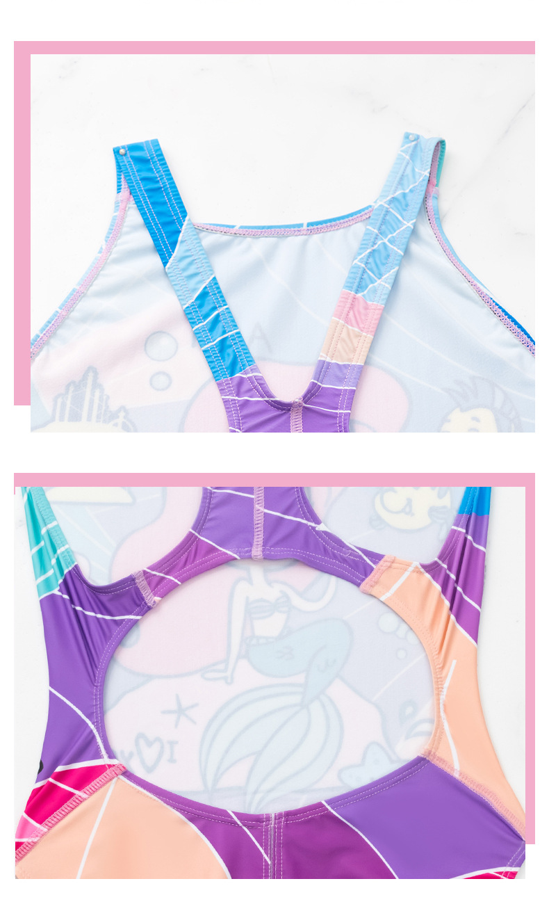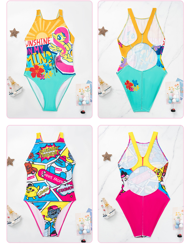 어린이 수영복 소녀용 경기용 수영복 귀여운 만화 프린트 수영 스포츠웨어