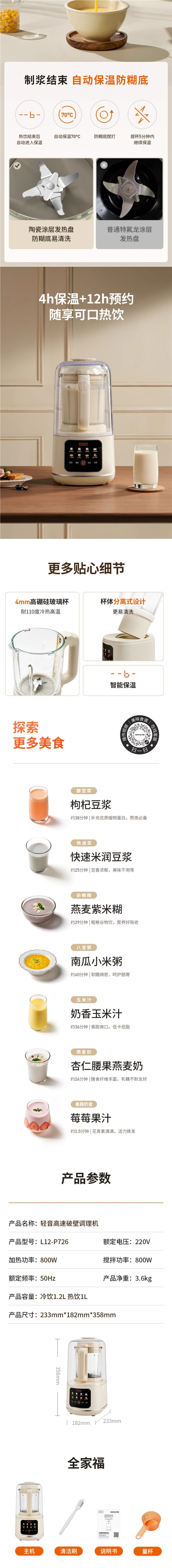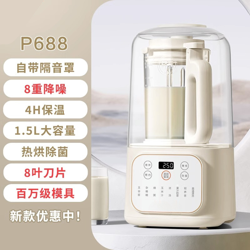 패셔너블한 벽파괴기 방음커버 라이트 사운드 가정용 신형 전자동 슬래그프리 두유제조기 주스기 소형 공식 조용스토어 가기