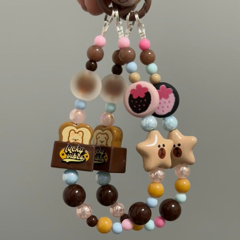 Xiaohongshu의 동일한 오리지널 딸기 토스트 휴대 전화 체인 ccd 펜던트 카메라 체인 만화 분실 방지 로프 키 체인