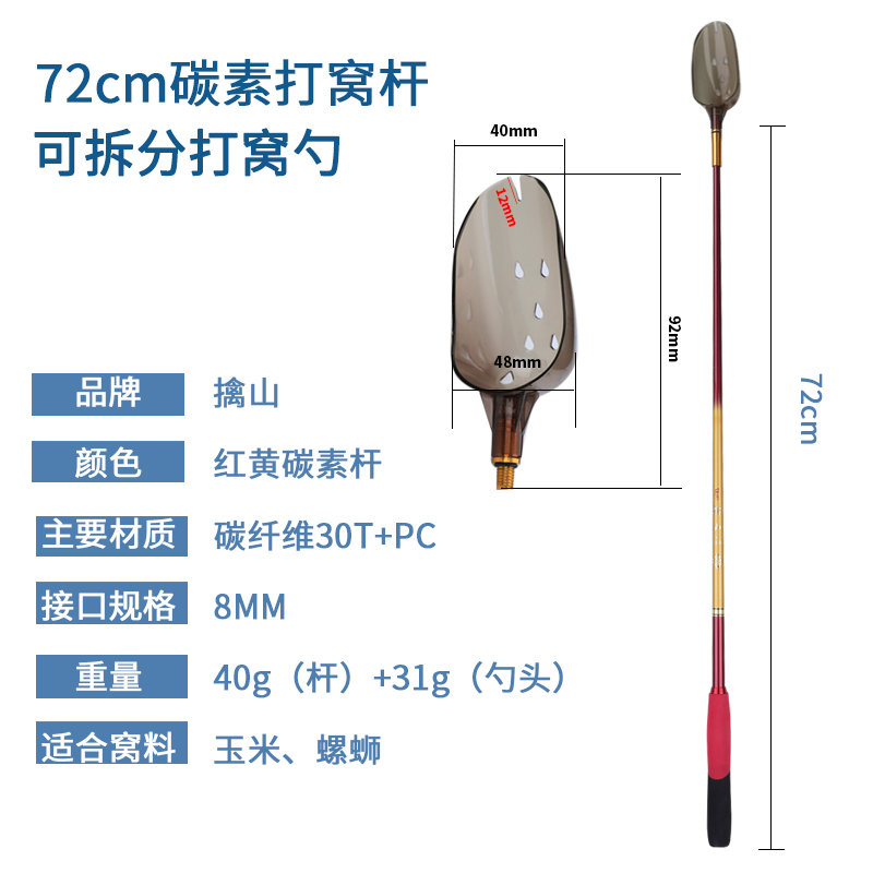 • 72CM 빨간색과 노란색 탄소 막대 + 구멍이 있는 10CM 스푼 헤드