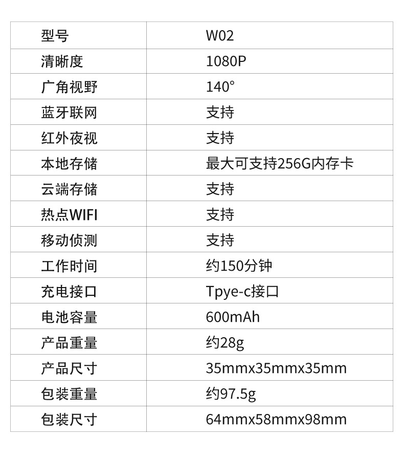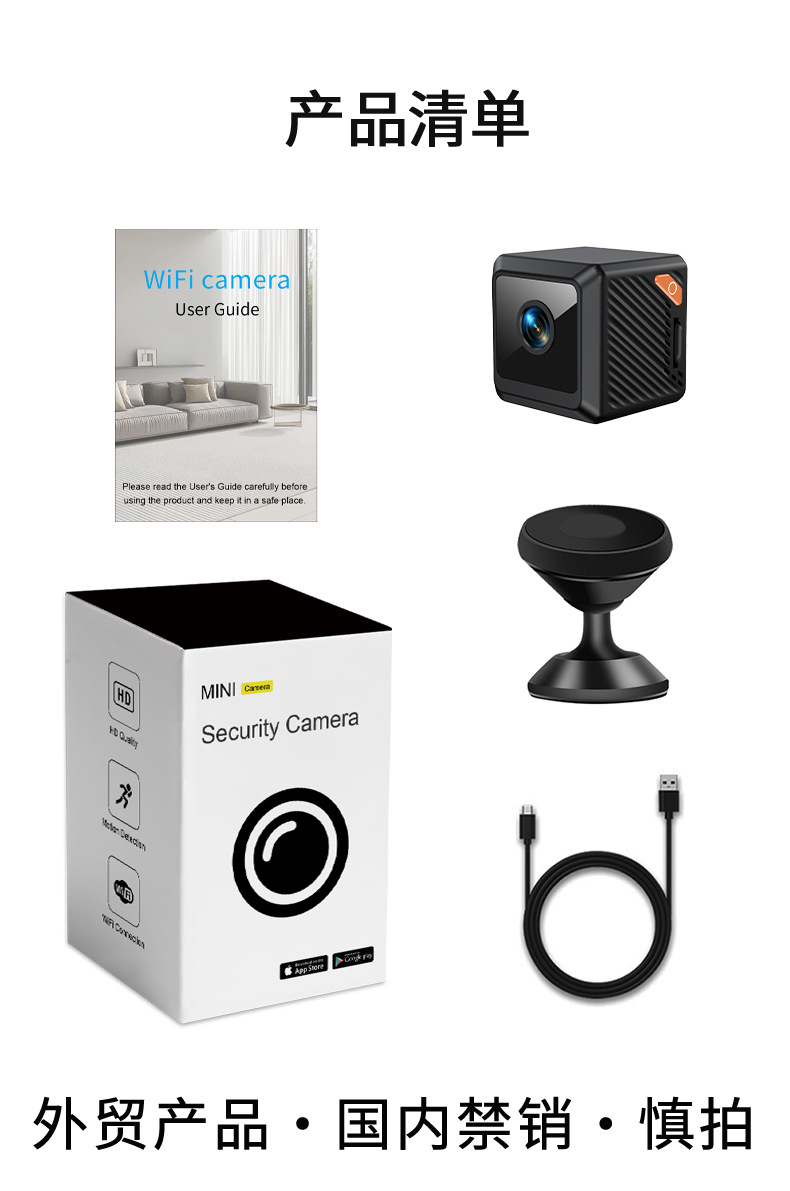 W02 HD WiFi 카메라 1080P 나이트 비전 보안 소형 모니터링 홈 야외 소형 카메라 사각형 카메라스토어 가기