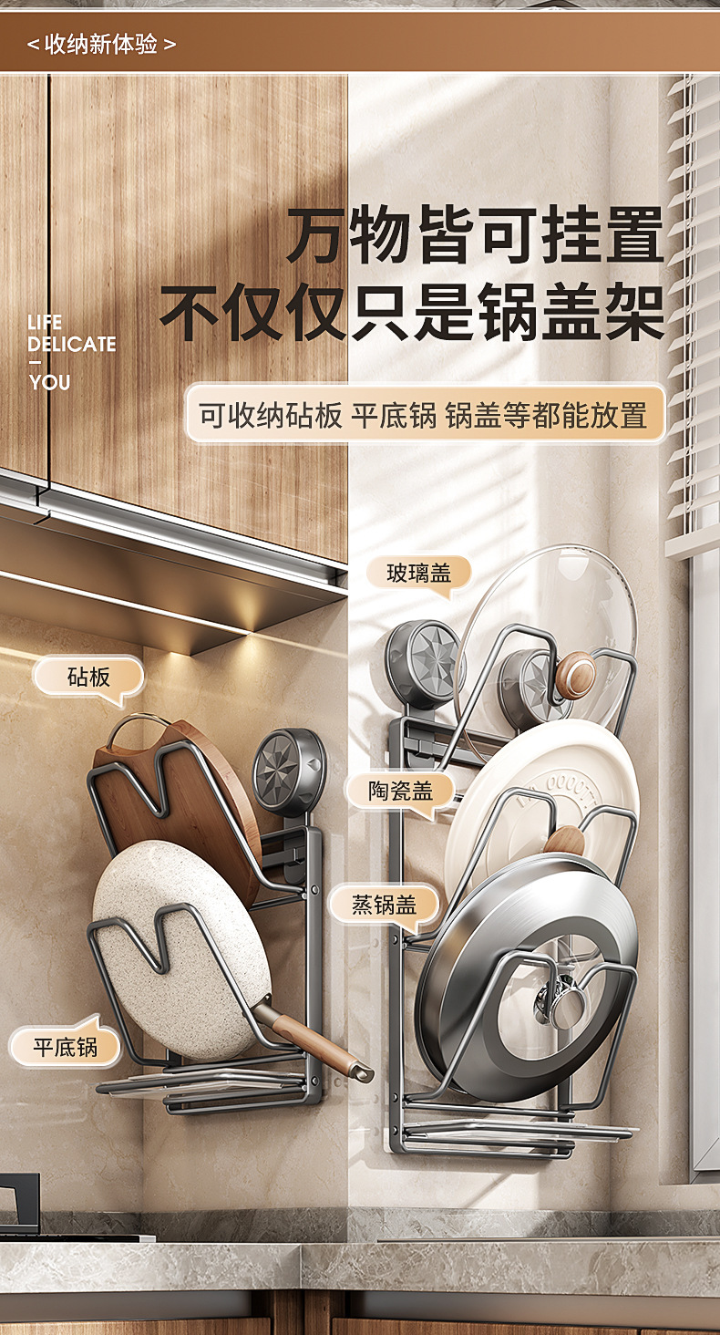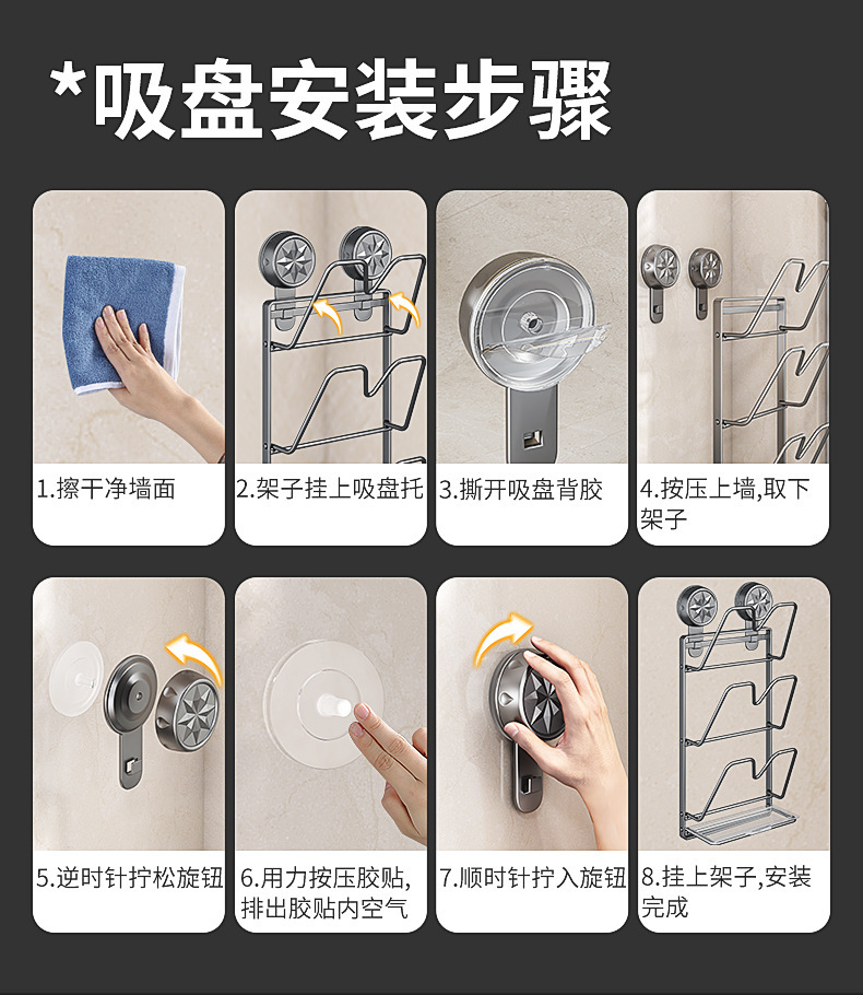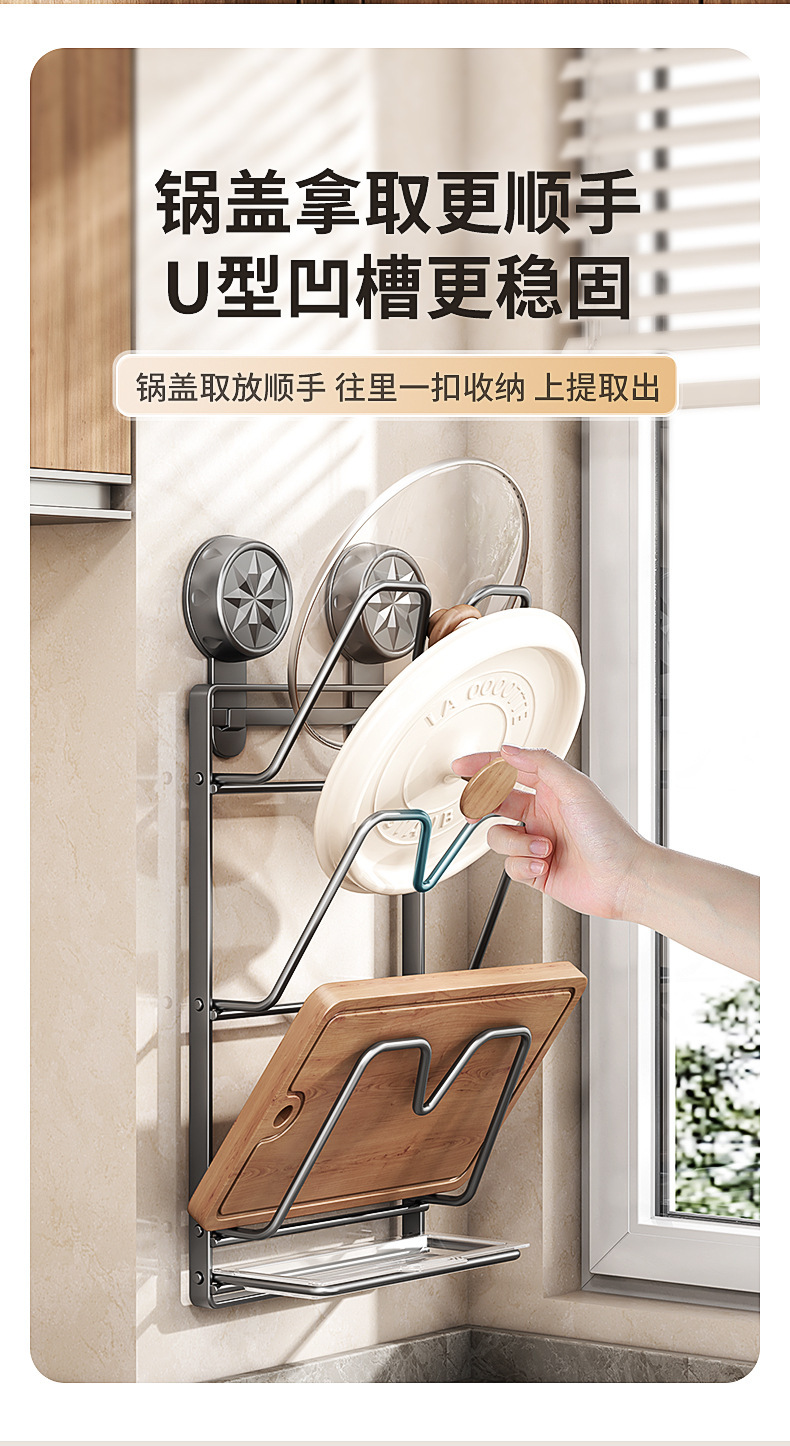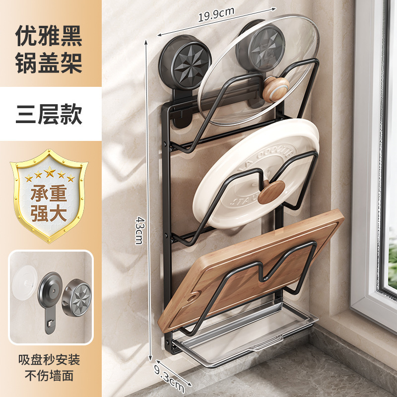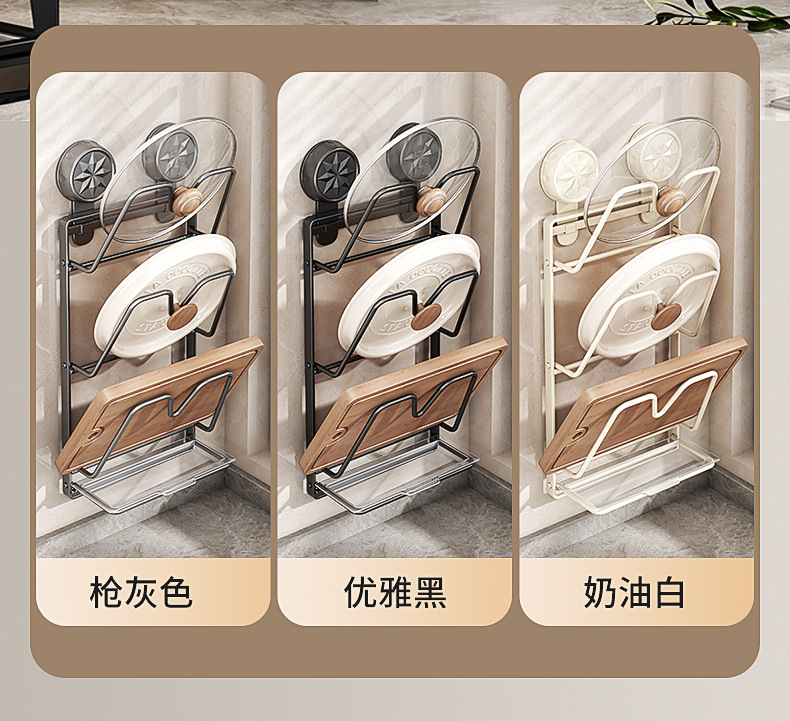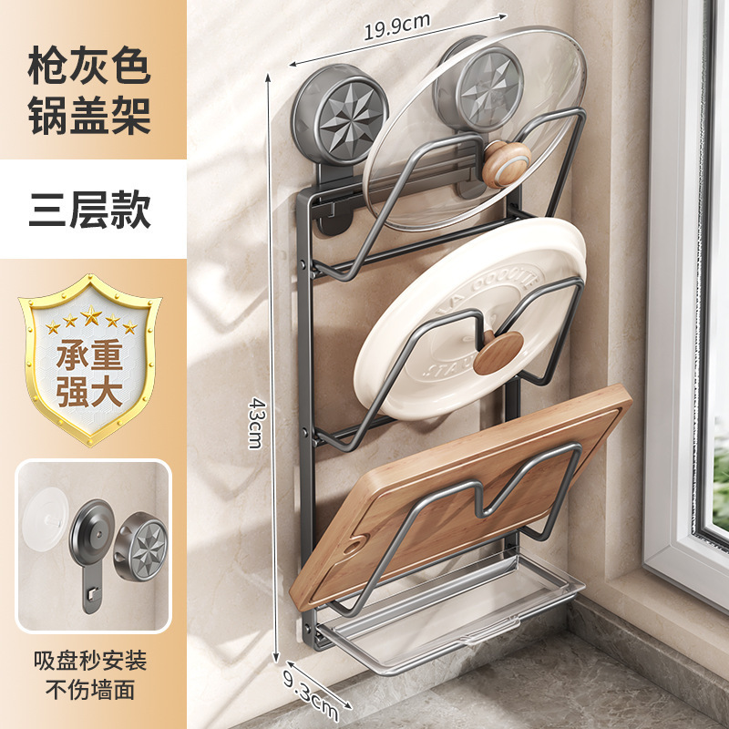제조업체는 펀치 없는 흡입 컵 주방 냄비 뚜껑 랙 다기능 벽 도마 보관 랙 가정용 다층 보관 랙을 공급합니다.스토어 가기