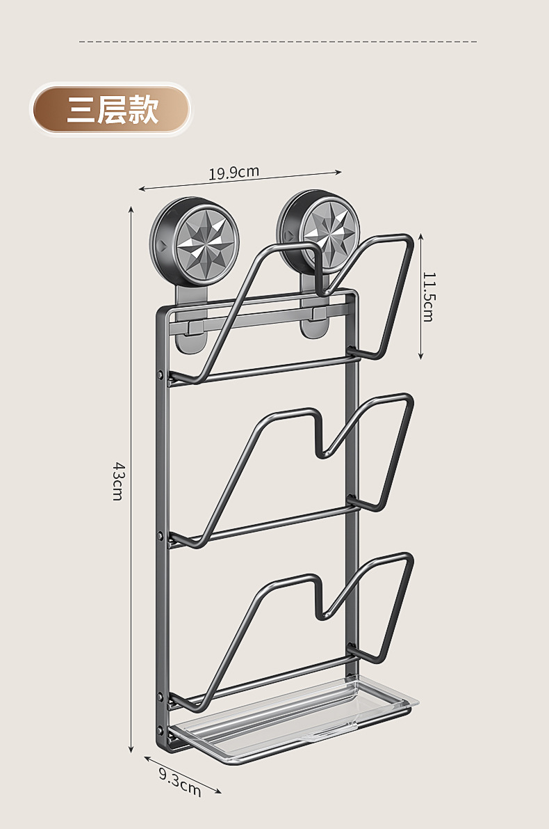 제조업체는 펀치 없는 흡입 컵 주방 냄비 뚜껑 랙 다기능 벽 도마 보관 랙 가정용 다층 보관 랙을 공급합니다.
