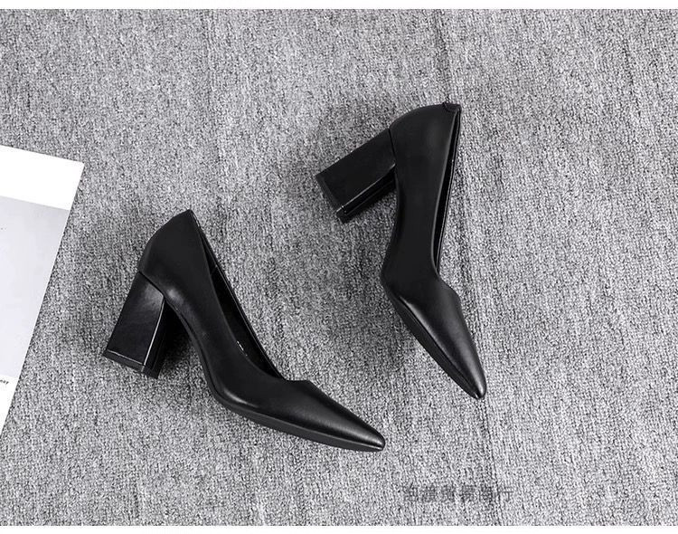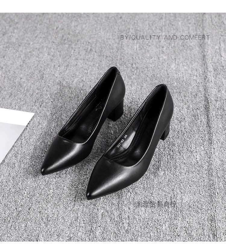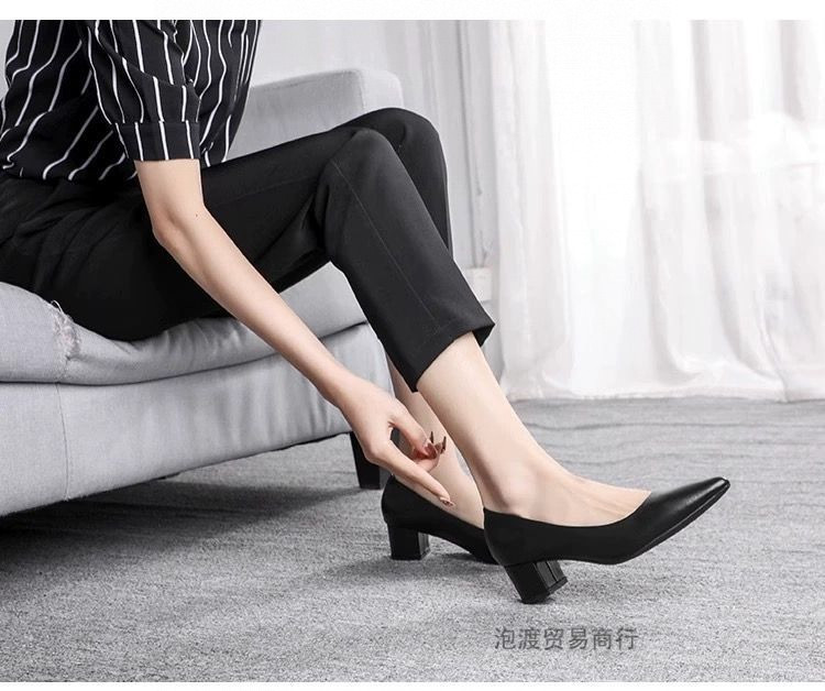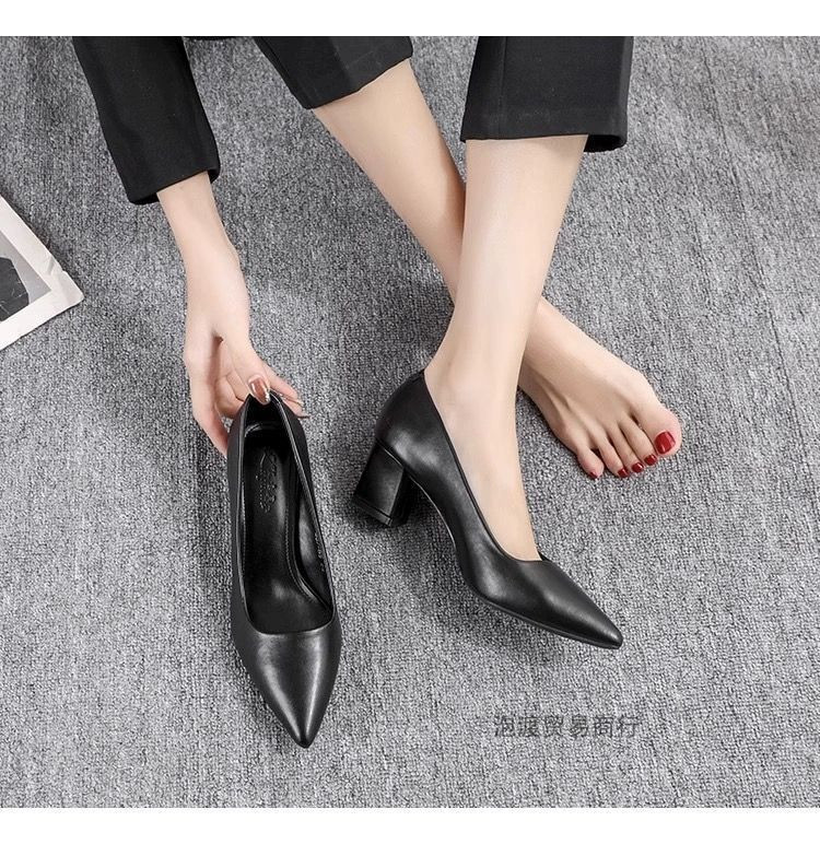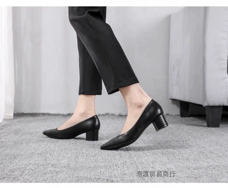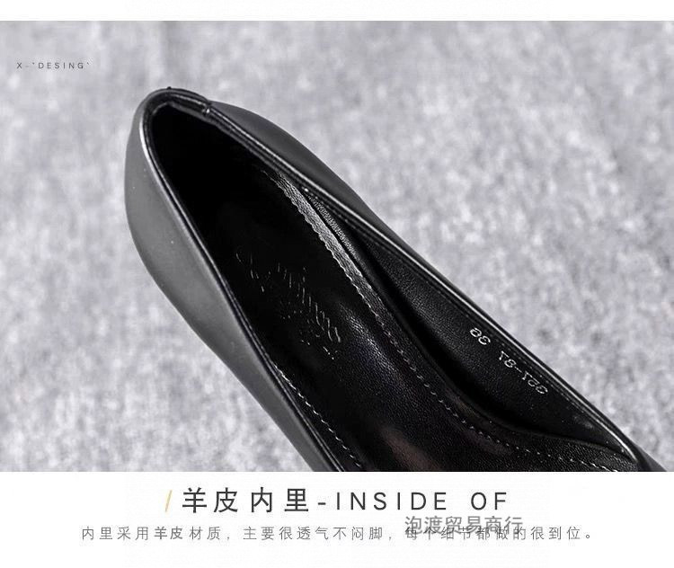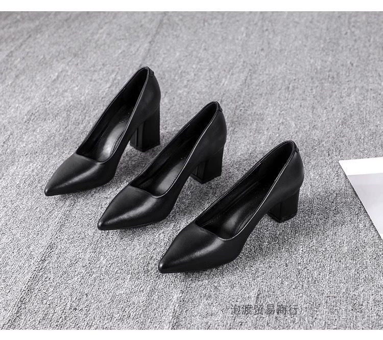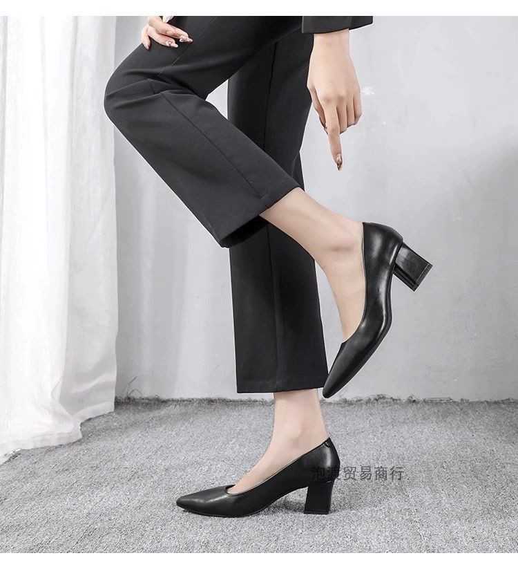 양가죽 천연가죽 블랙 여성용 작업화, 부드러운 밑창, 장시간 서 있어도 피곤하지 않은 전문화, 편안한 작업용 하이힐, 얇은 굽스토어 가기