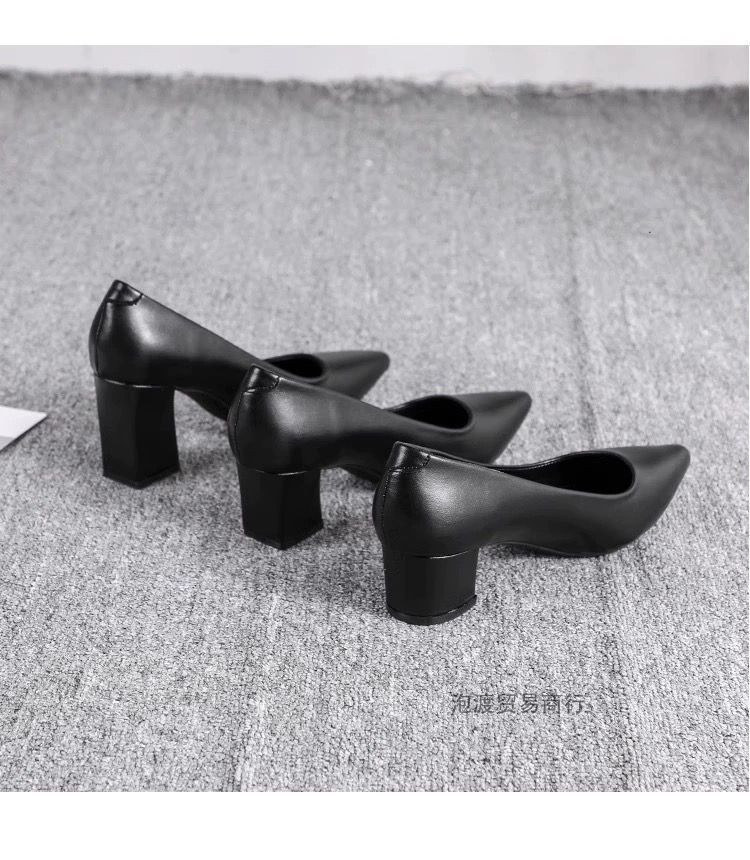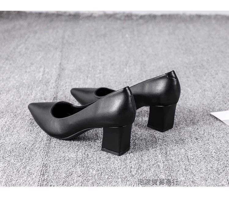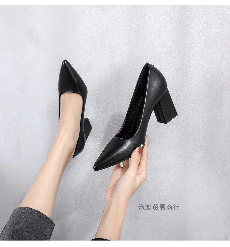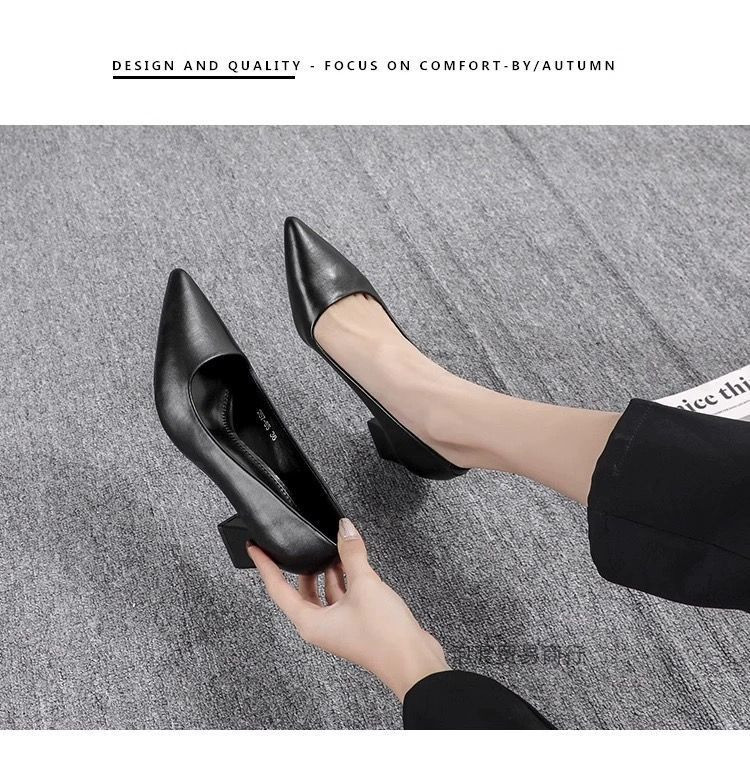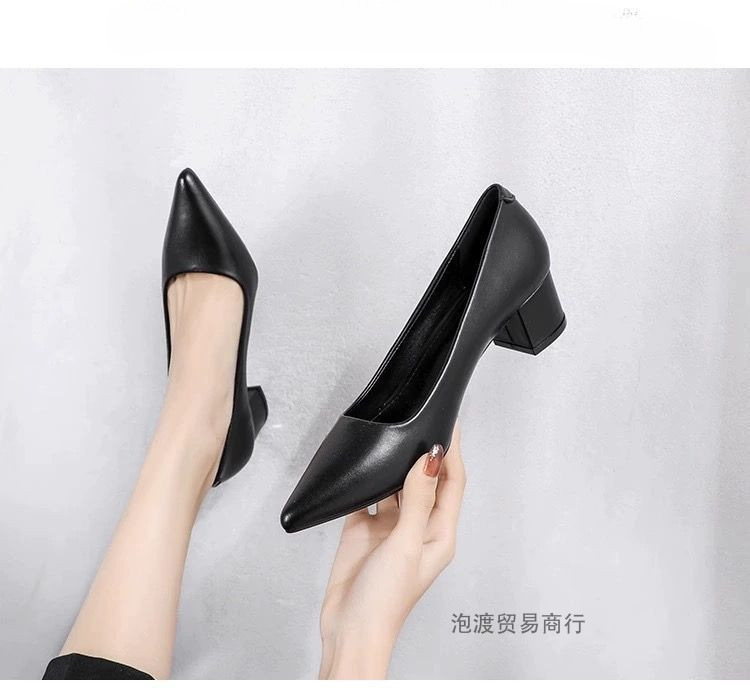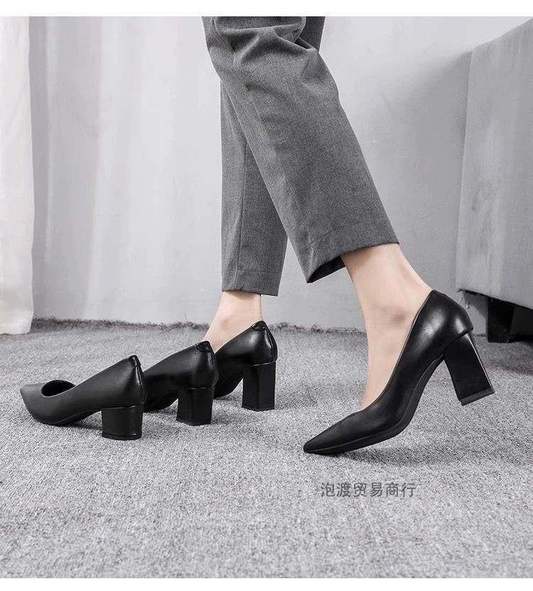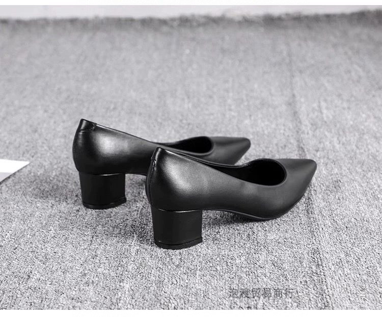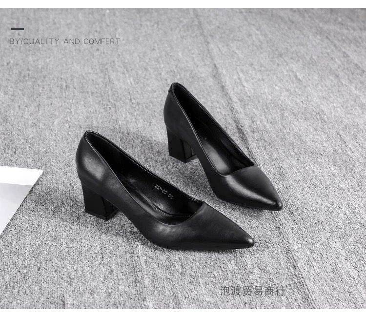 양가죽 천연가죽 블랙 여성용 작업화, 부드러운 밑창, 장시간 서 있어도 피곤하지 않은 전문화, 편안한 작업용 하이힐, 얇은 굽스토어 가기