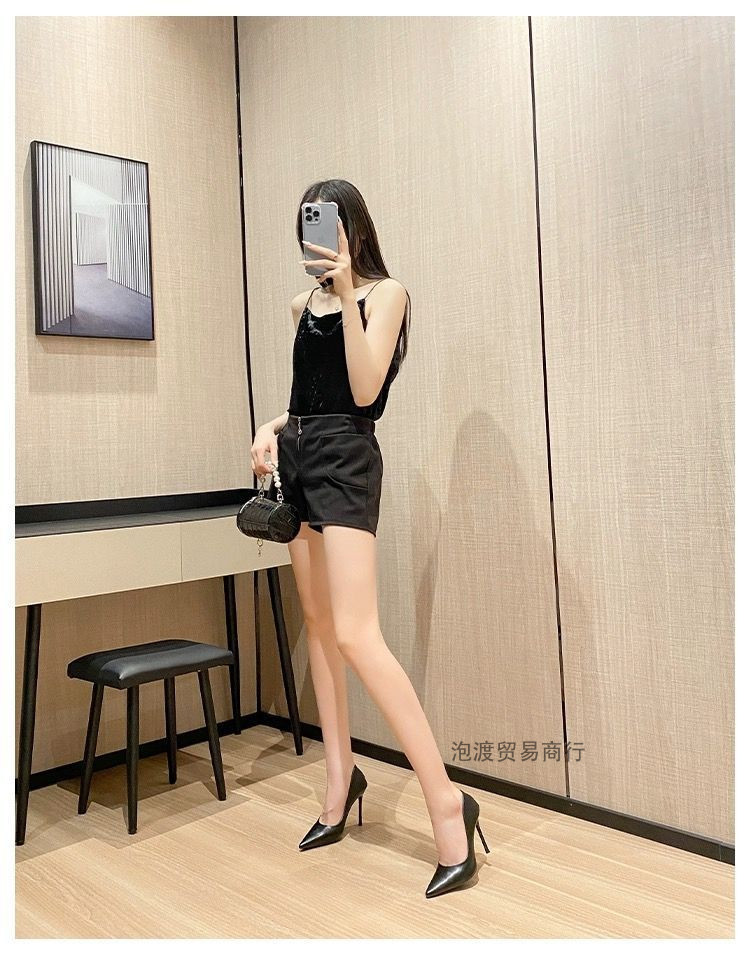 • 슈퍼 천 가죽-블랙 5cm 스틸레토 힐