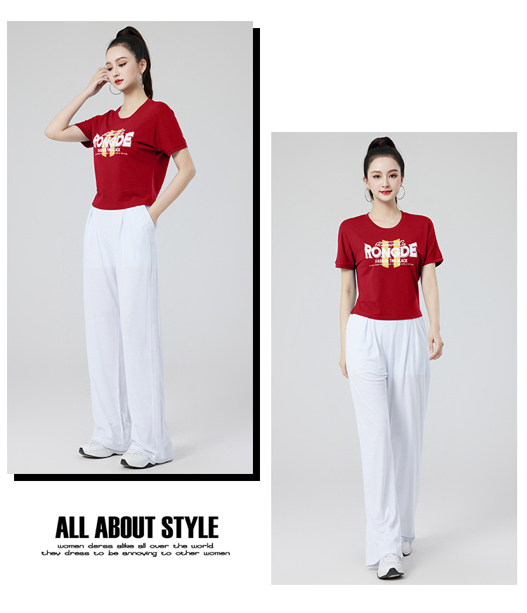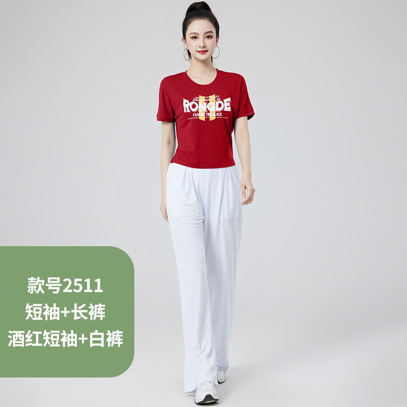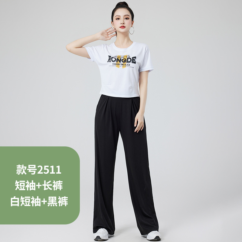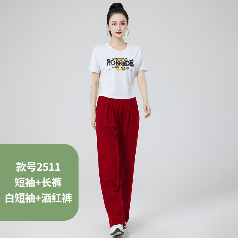 2025 새로운 슬림 스퀘어 댄스 러닝 캐주얼 스포츠 루즈 숄더 좁은 버전 스트레이트 팬츠 슈트