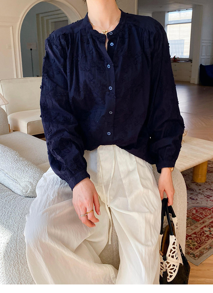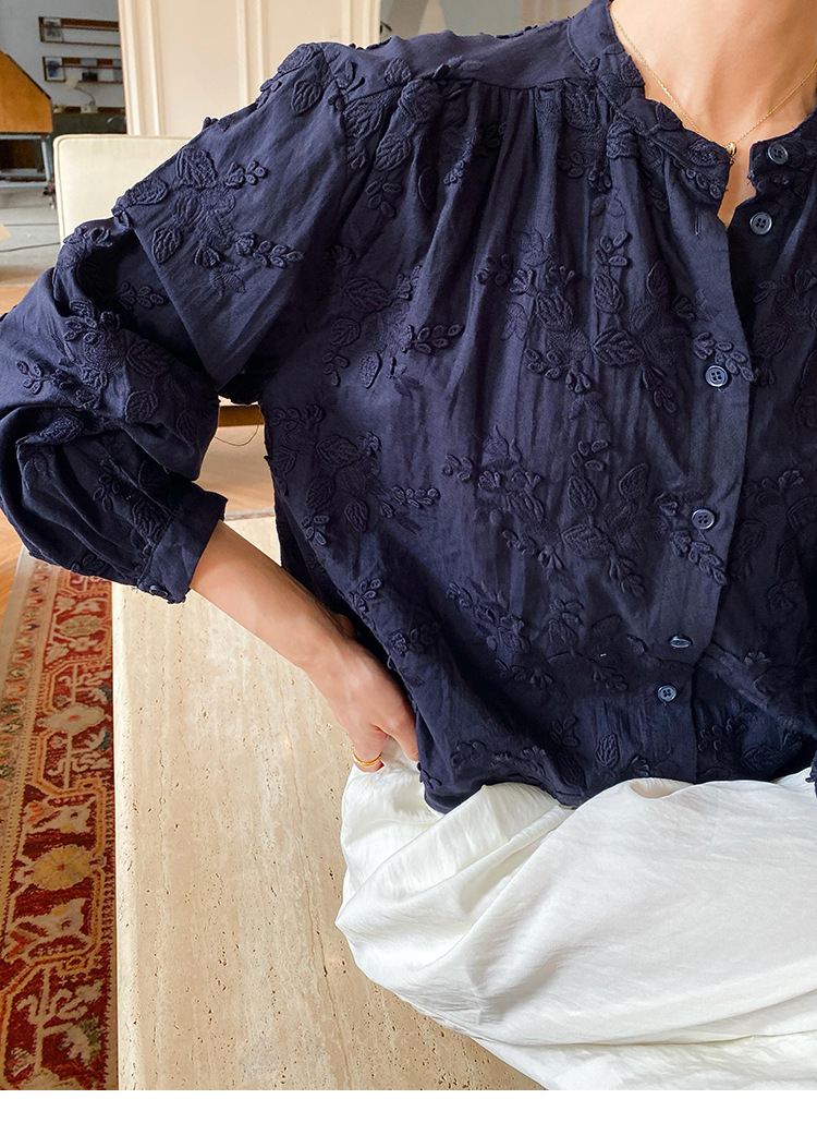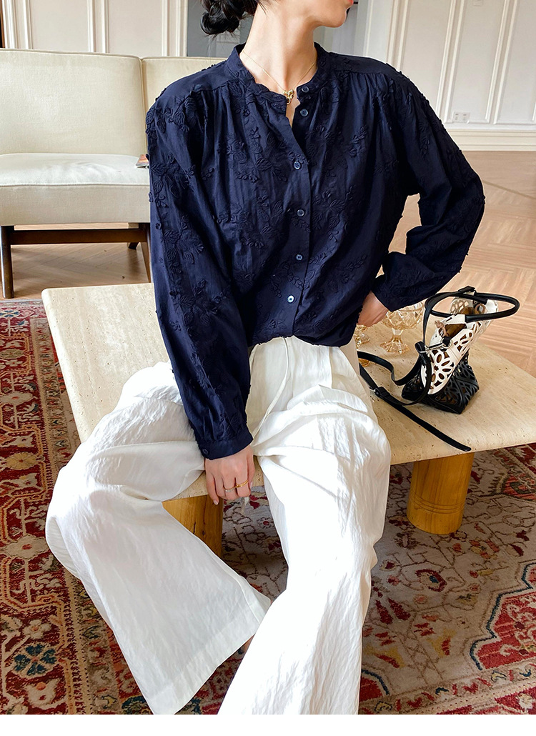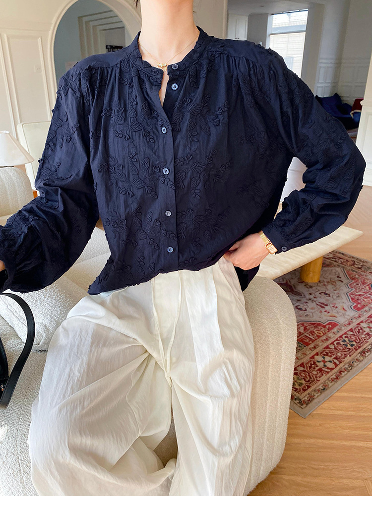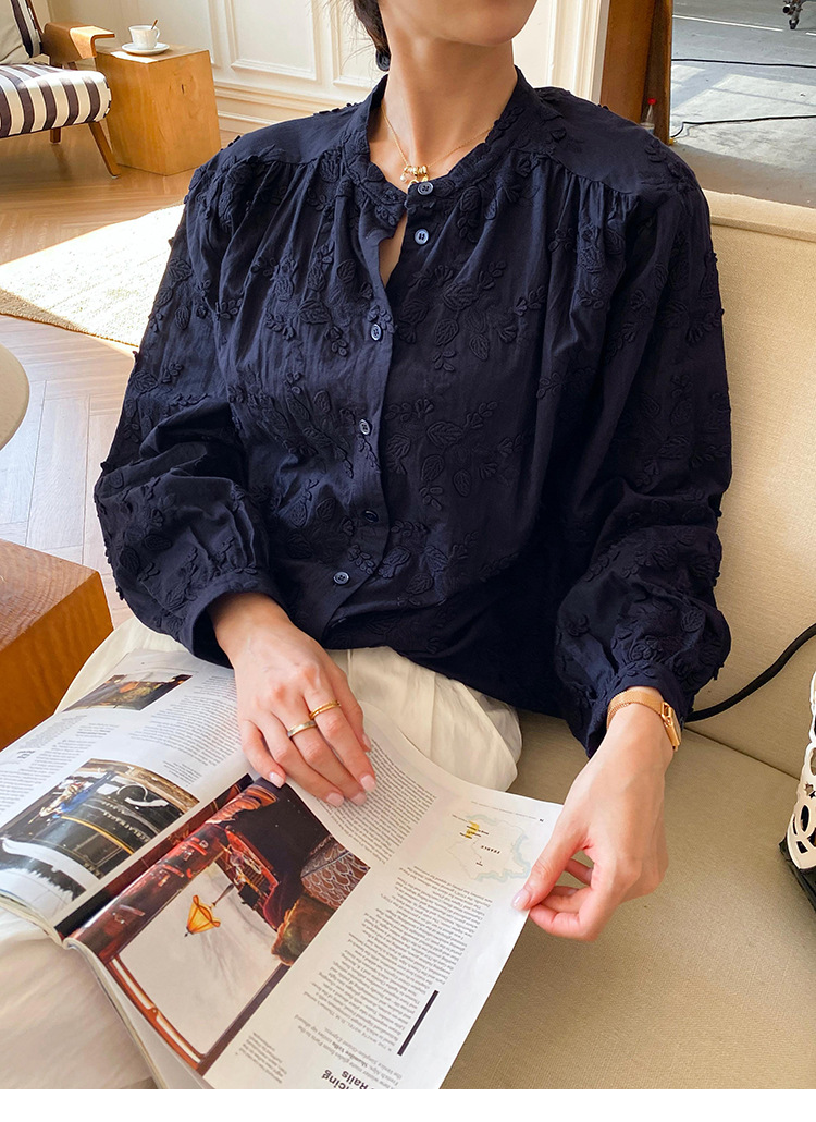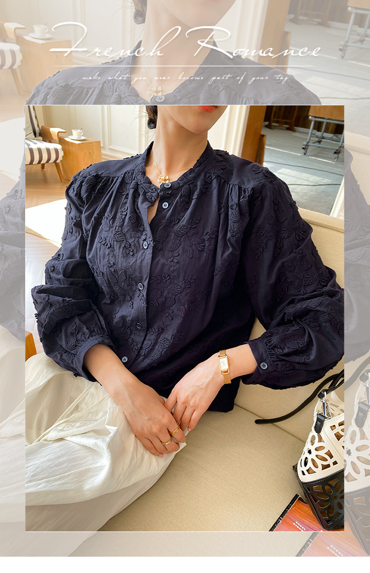 대외 무역 크로스보더 여성복 신상 가을 프렌치 스타일 셔츠 여성 긴팔 자수 셔츠 심천 남유 여성 상의 가을스토어 가기