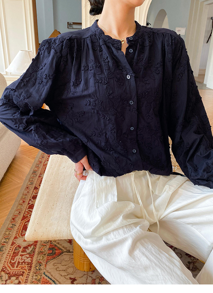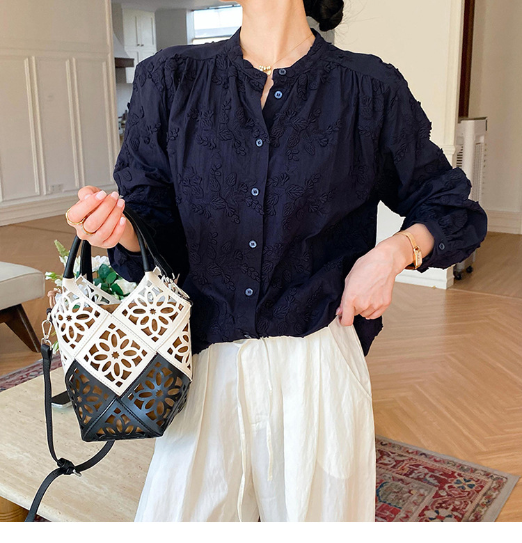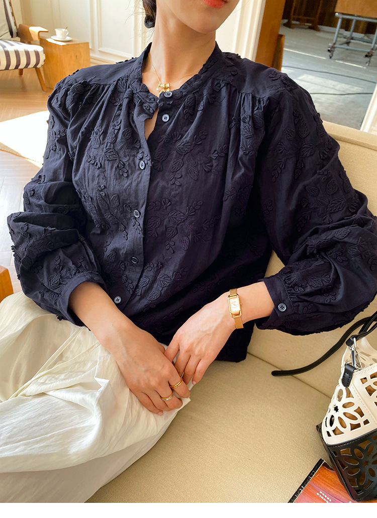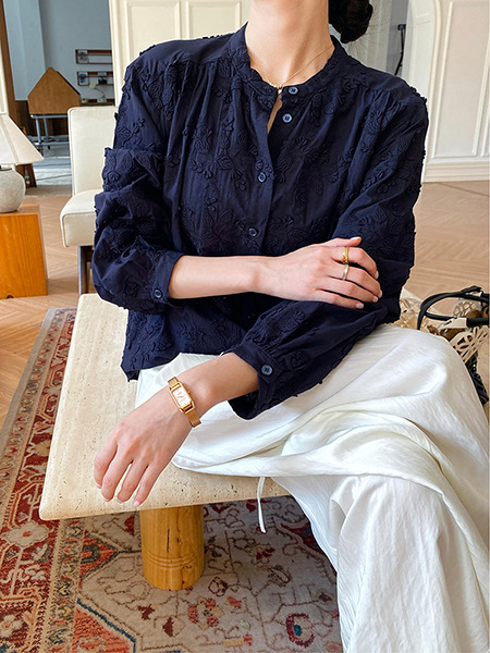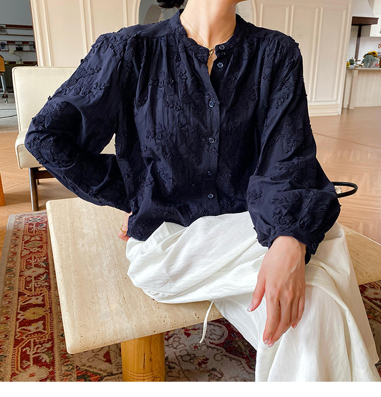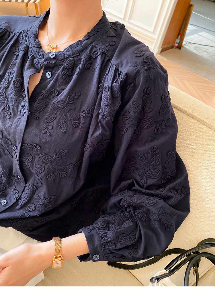 대외 무역 크로스보더 여성복 신상 가을 프렌치 스타일 셔츠 여성 긴팔 자수 셔츠 심천 남유 여성 상의 가을스토어 가기