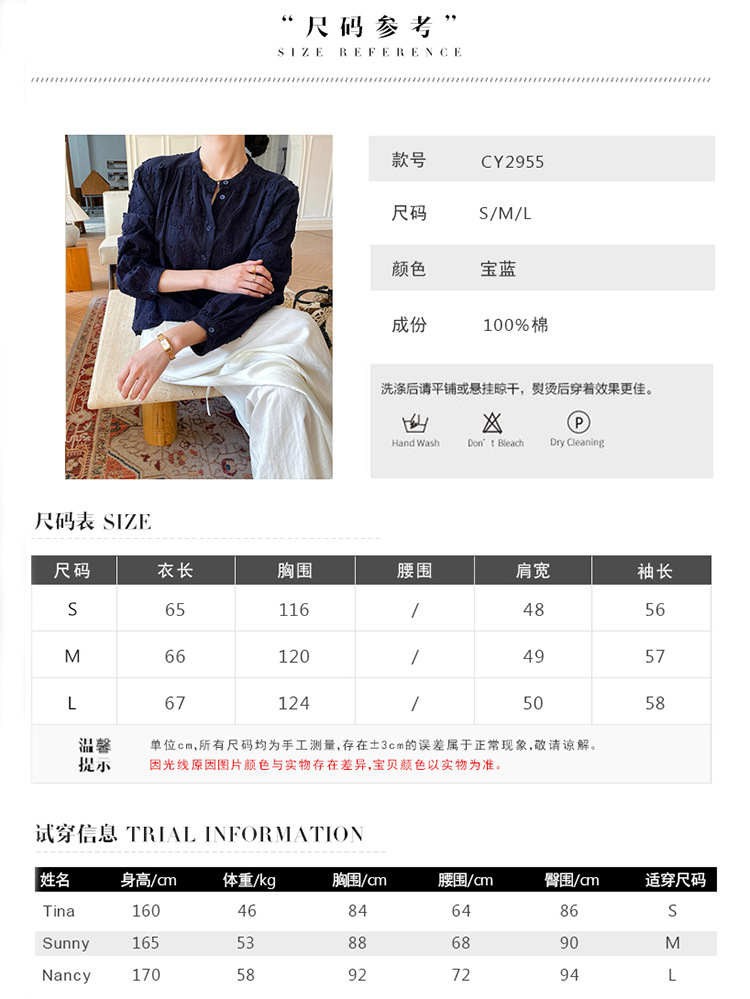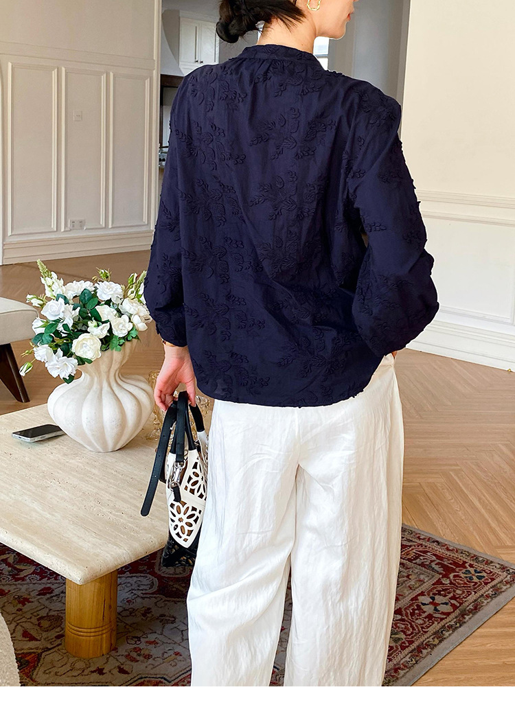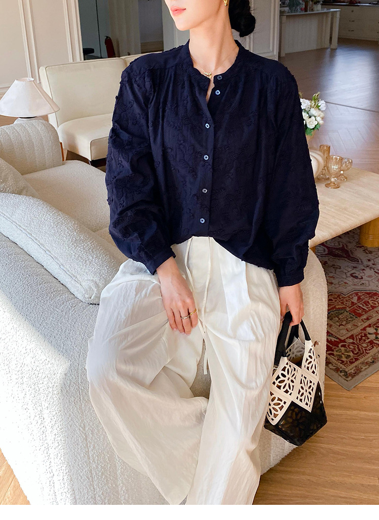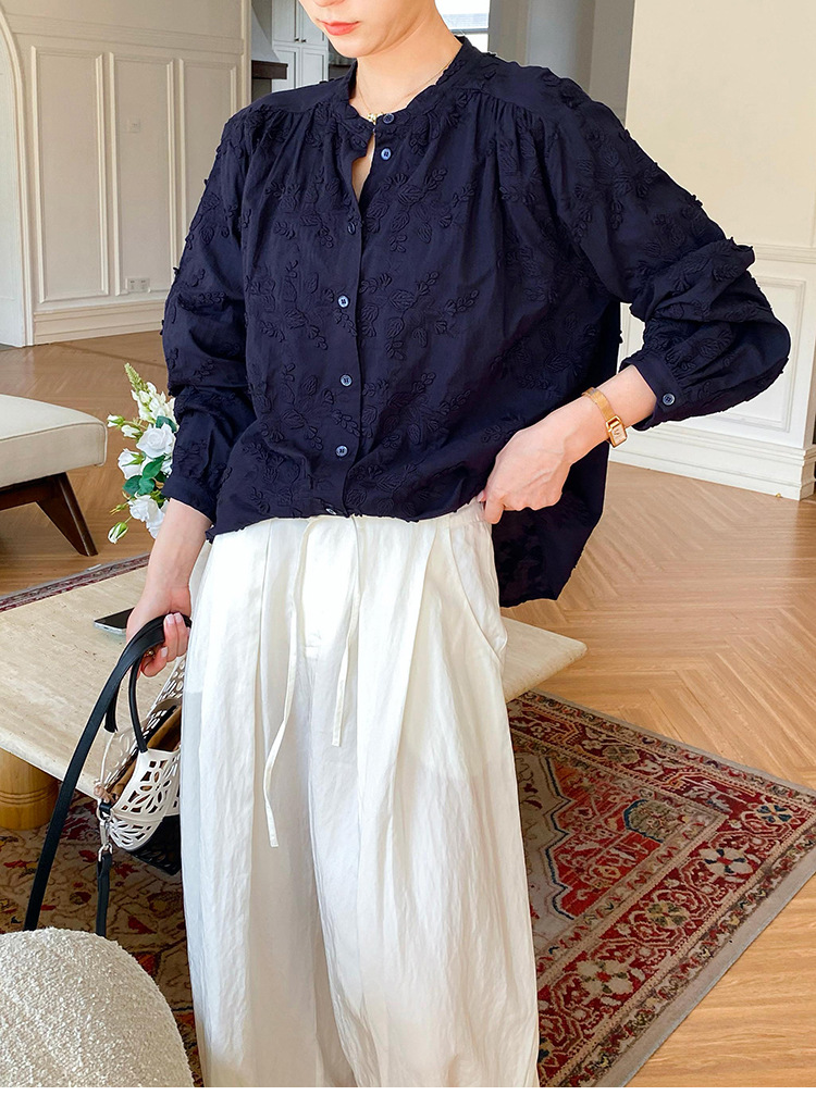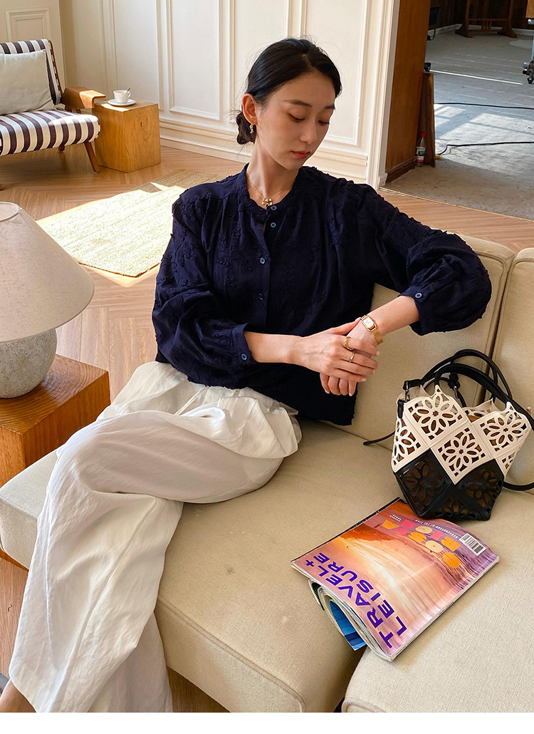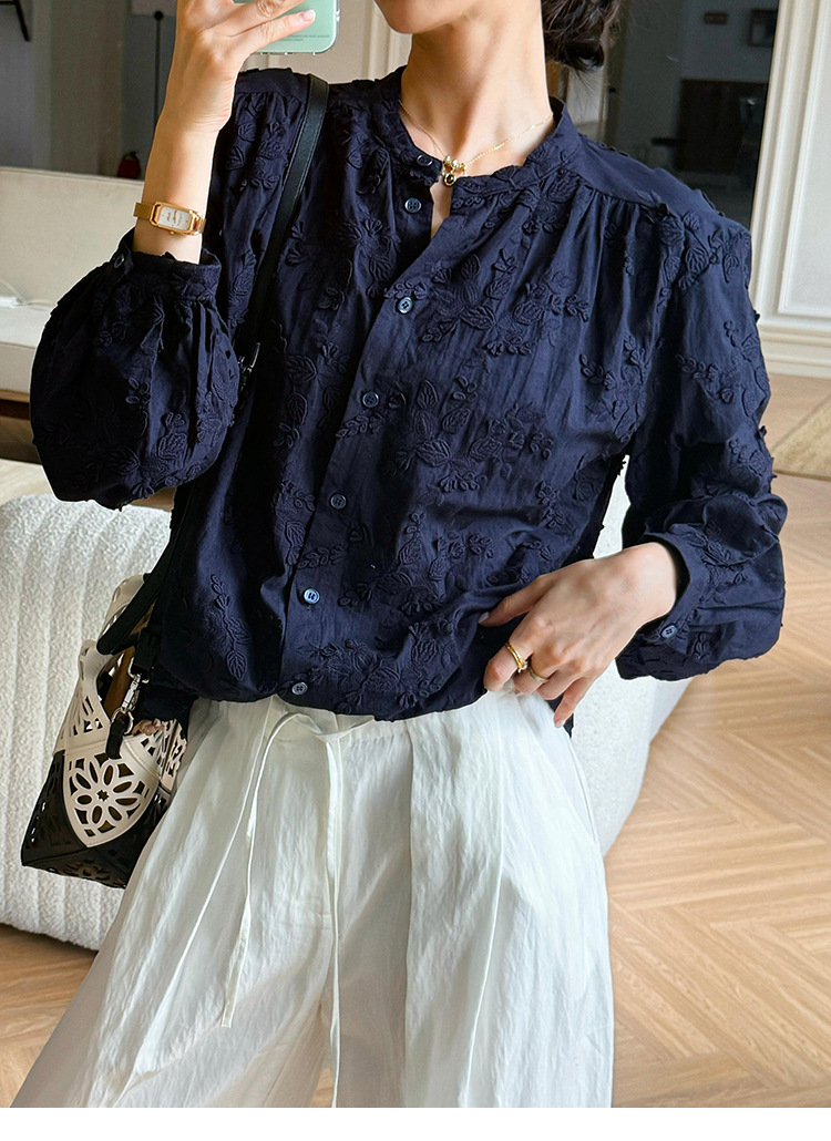 대외 무역 크로스보더 여성복 신상 가을 프렌치 스타일 셔츠 여성 긴팔 자수 셔츠 심천 남유 여성 상의 가을스토어 가기