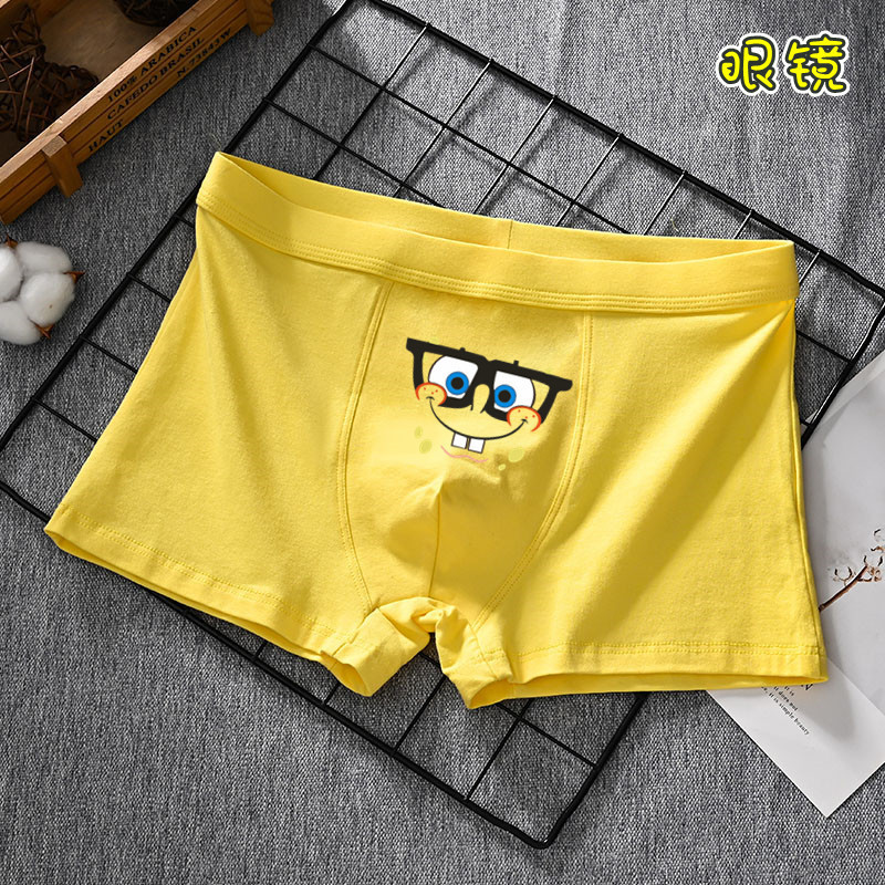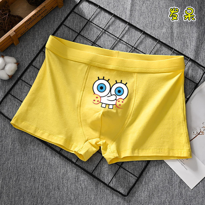 남자 속옷 귀여운 만화 스폰지 밥 노란색 남자 속옷 사각형 여름 소년 순수 코튼 항균 남자스토어 가기