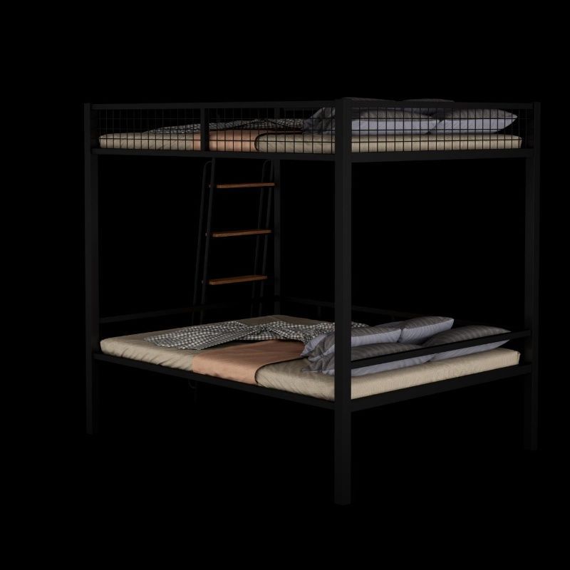 • 검정색 이층 침대(계단 왼쪽 벽에 기대어 있음)