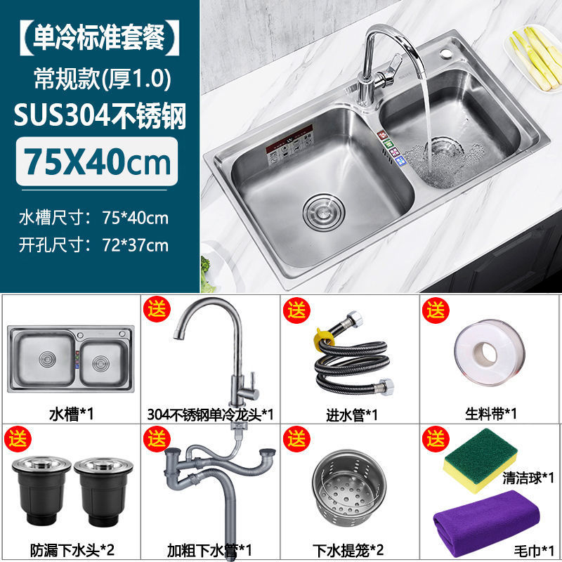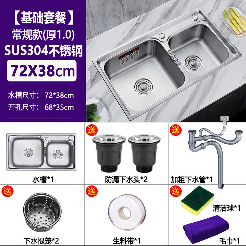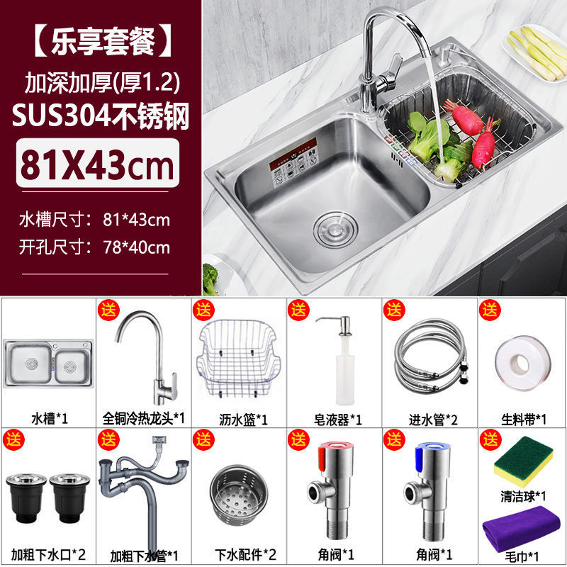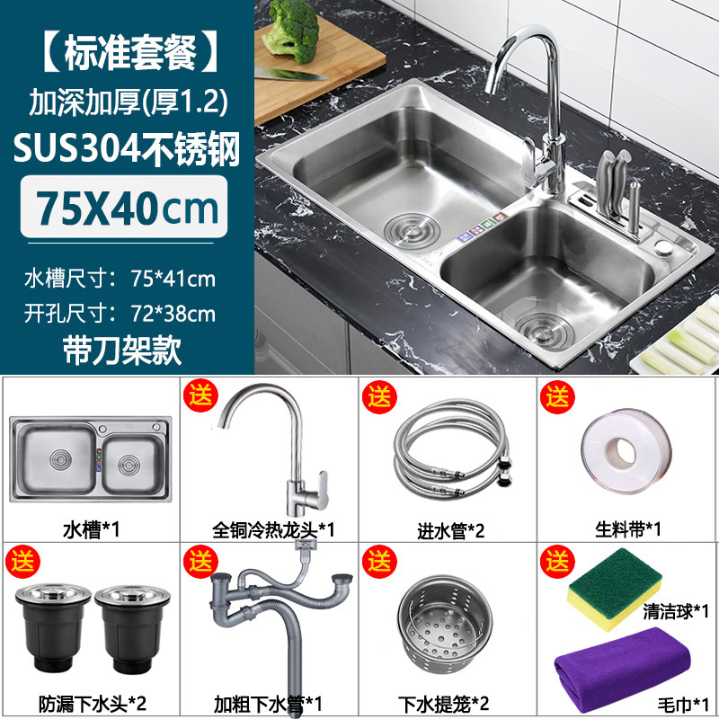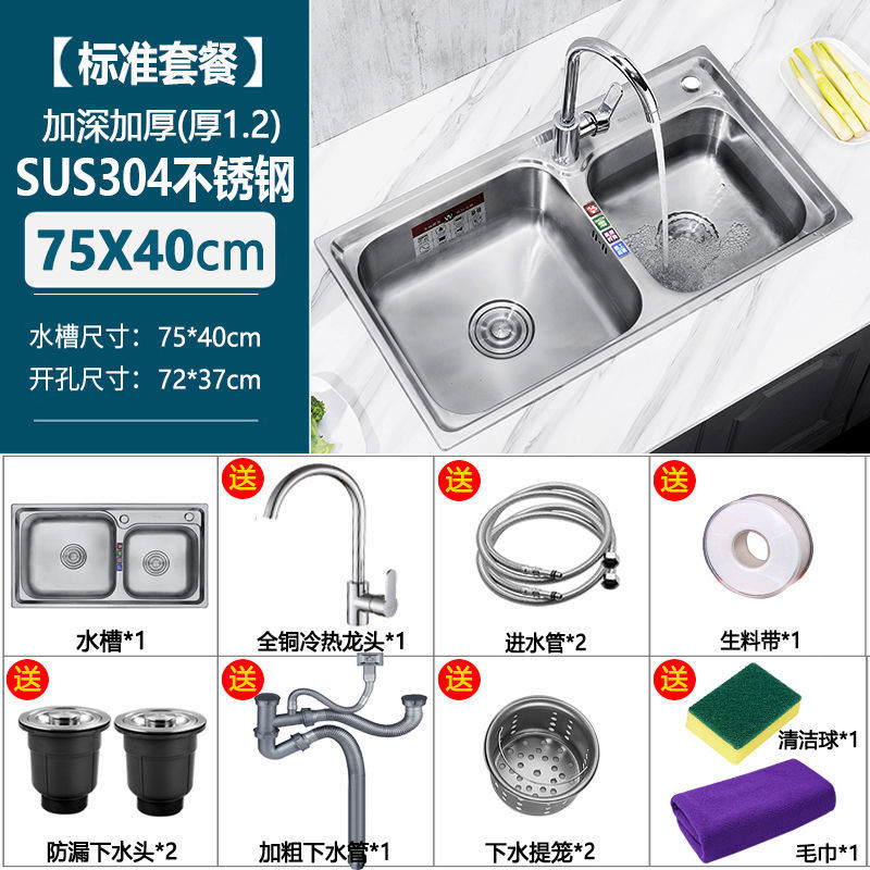 두꺼운 304 스테인레스 스틸 싱크대 주방 깊은 일체형 이중 슬롯 패키지 브러시 식기 세척 싱크대 이중 세면대 배송