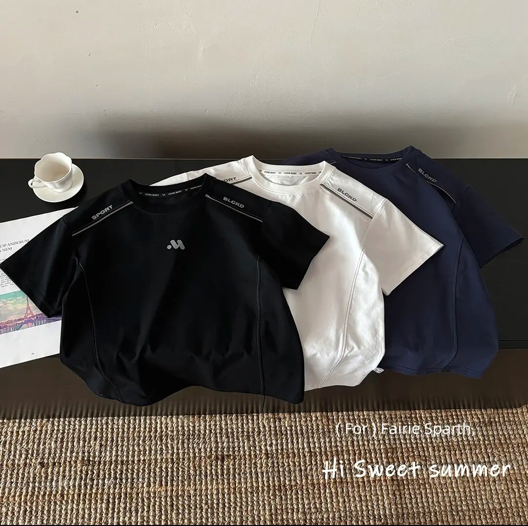 [솔로나-아이스 코튼 T] 여름 아동용 아이스 코튼 반팔 티셔츠 소년 소녀용, 패셔너블하고 활용도가 높은 아동복
