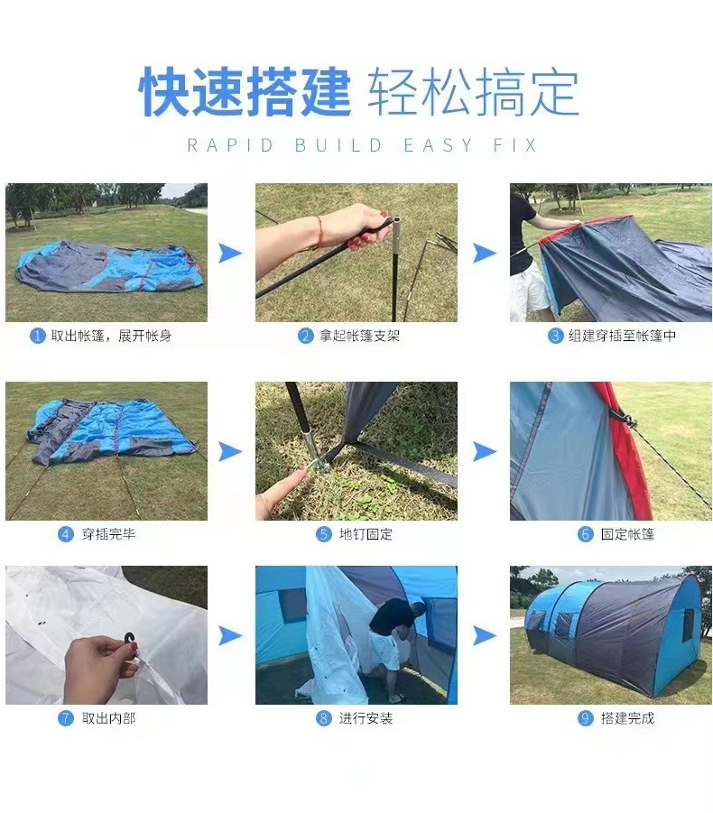국경 간 대형 텐트 두꺼운 공원 캠핑 장비 자동 휴대용 8-10 인 가족 캠핑 터널 텐트