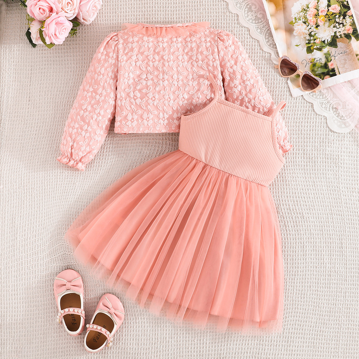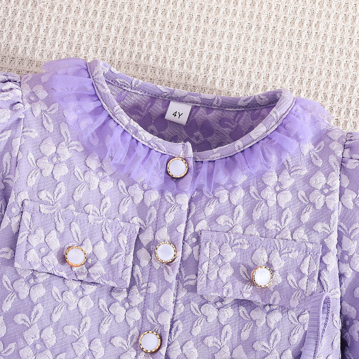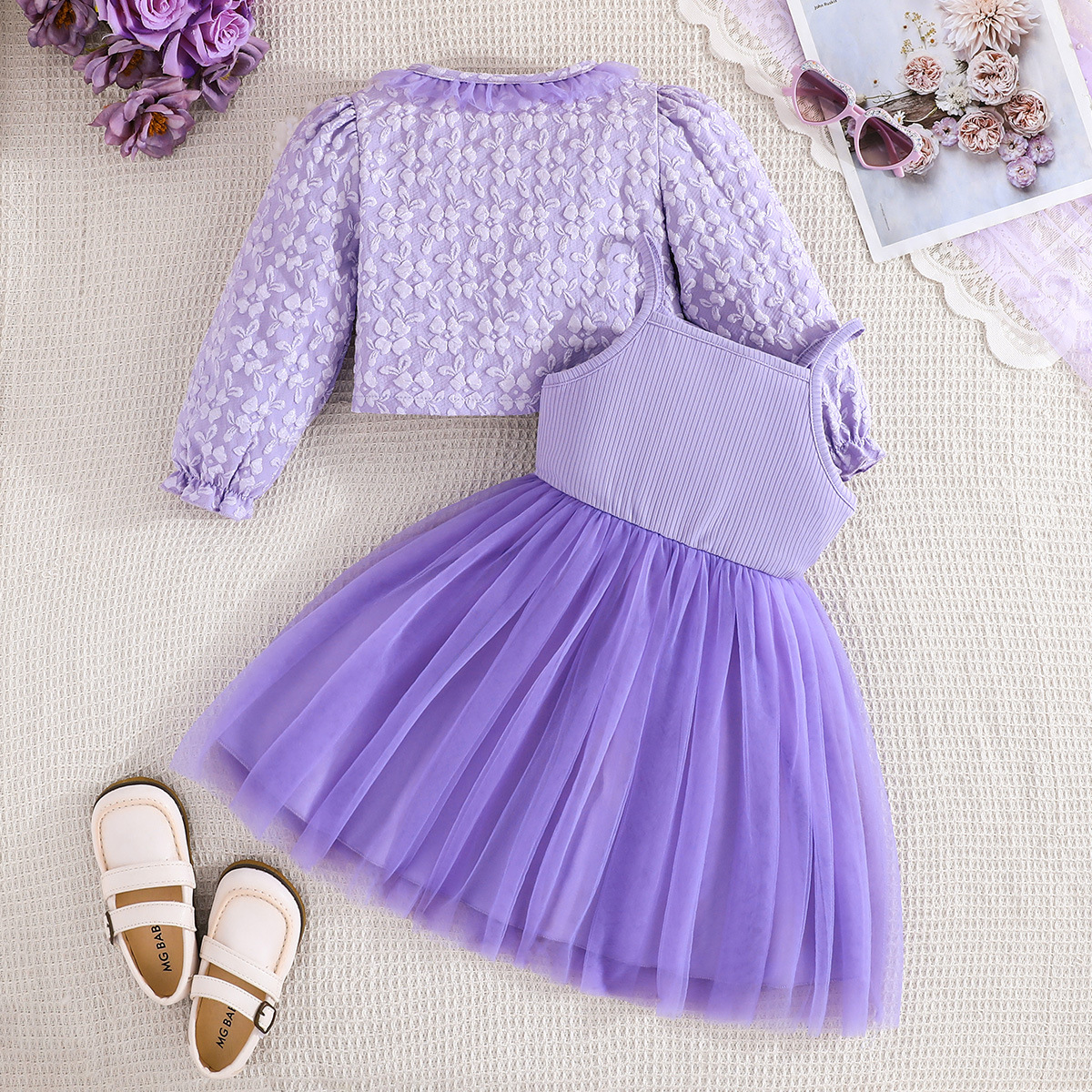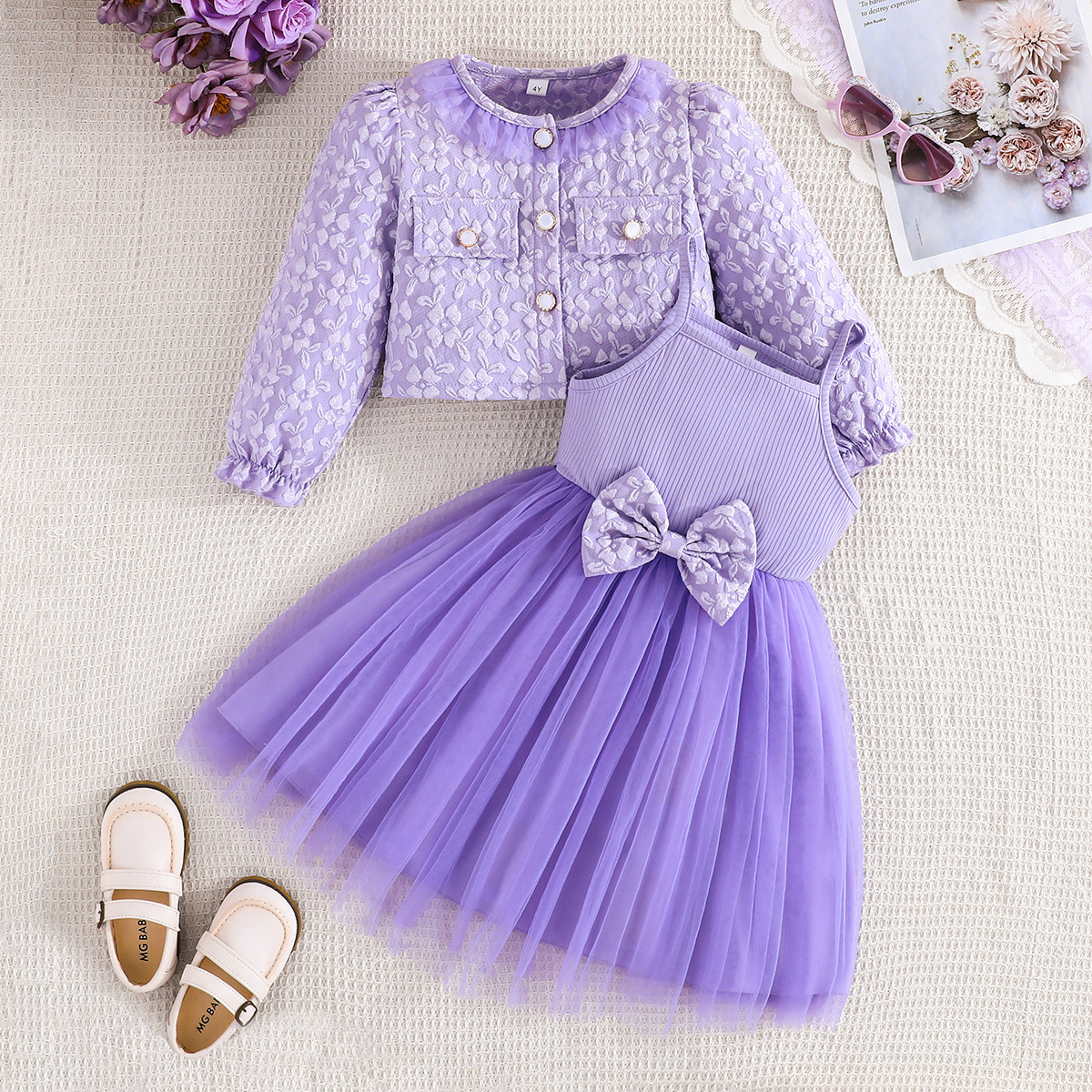 2025 국내외 인기 판매 유럽과 미국 INS 가을 블루 나비 프린트 여아 코트와 드레스 투피스 세트스토어 가기
