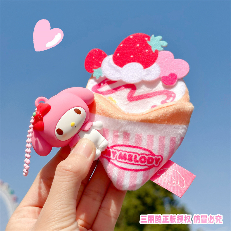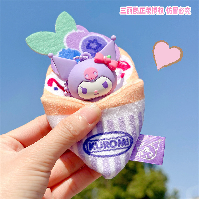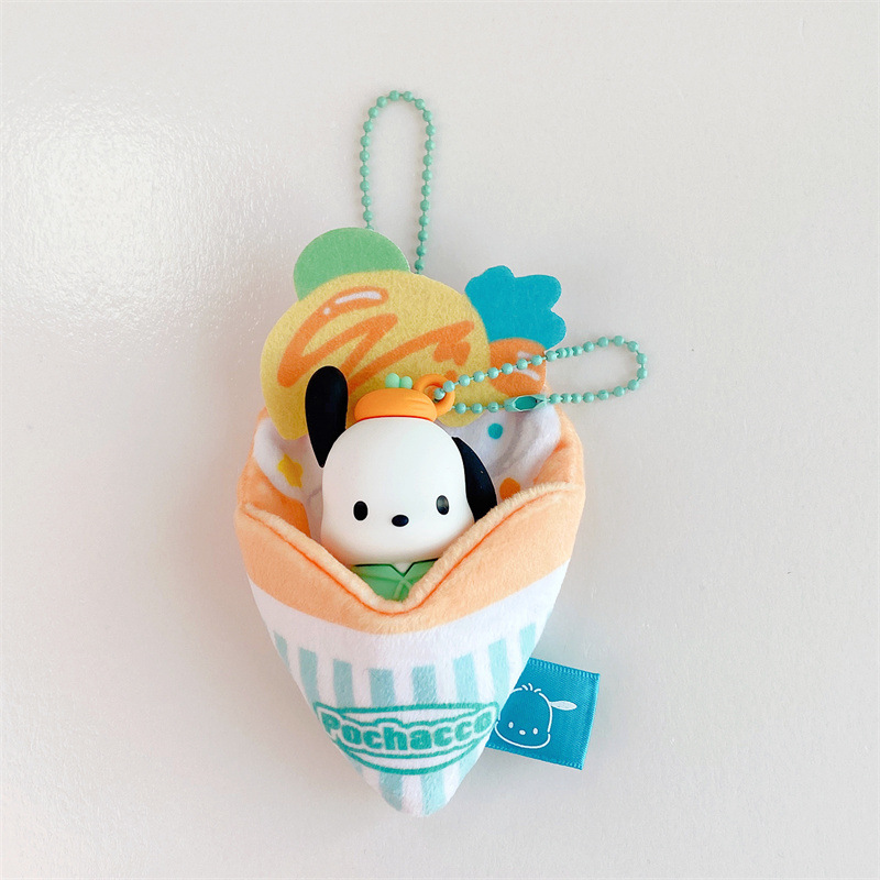 정품 산리오 팬케이크 시리즈 인형 열쇠 고리 귀여운 계피 개 어린이 학생 학교 가방 펜던트