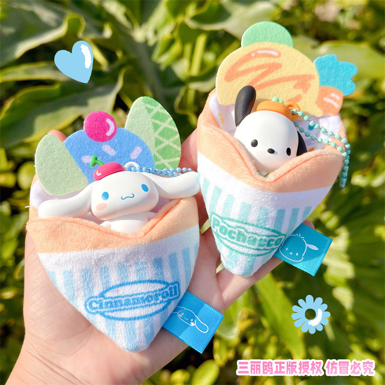 정품 산리오 팬케이크 시리즈 인형 열쇠 고리 귀여운 계피 개 어린이 학생 학교 가방 펜던트스토어 가기