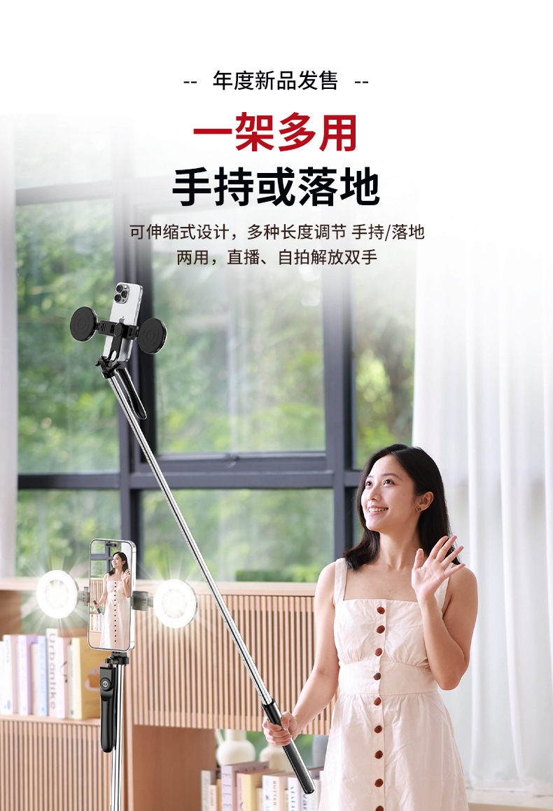 1.8m 새로운 휴대 전화 블루투스 Selfie 스틱 범용 전화 안정기 라이브 방송 플로어 스탠드 삼각대 Selfie 스틱스토어 가기