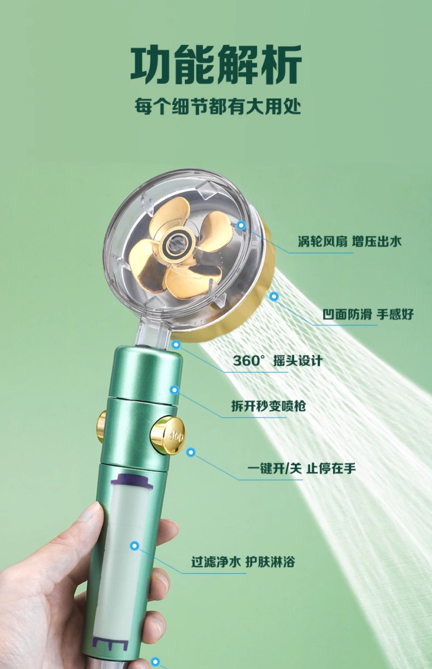 Xiaomanyao 터보차저 샤워 헤드 필터링 가압 목욕 샤워 세트 욕실 레인 샤워 헤드스토어 가기