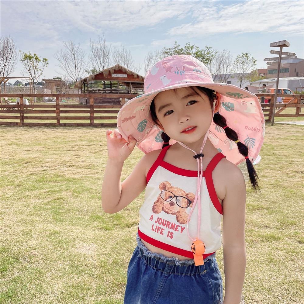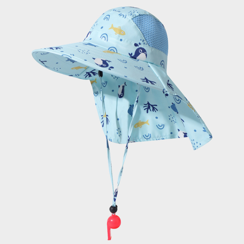어린이 여름 프린트 목 보호 숄, 모자, 휘파람 모자, 아기 야외 등산 및 낚시 어부 모자