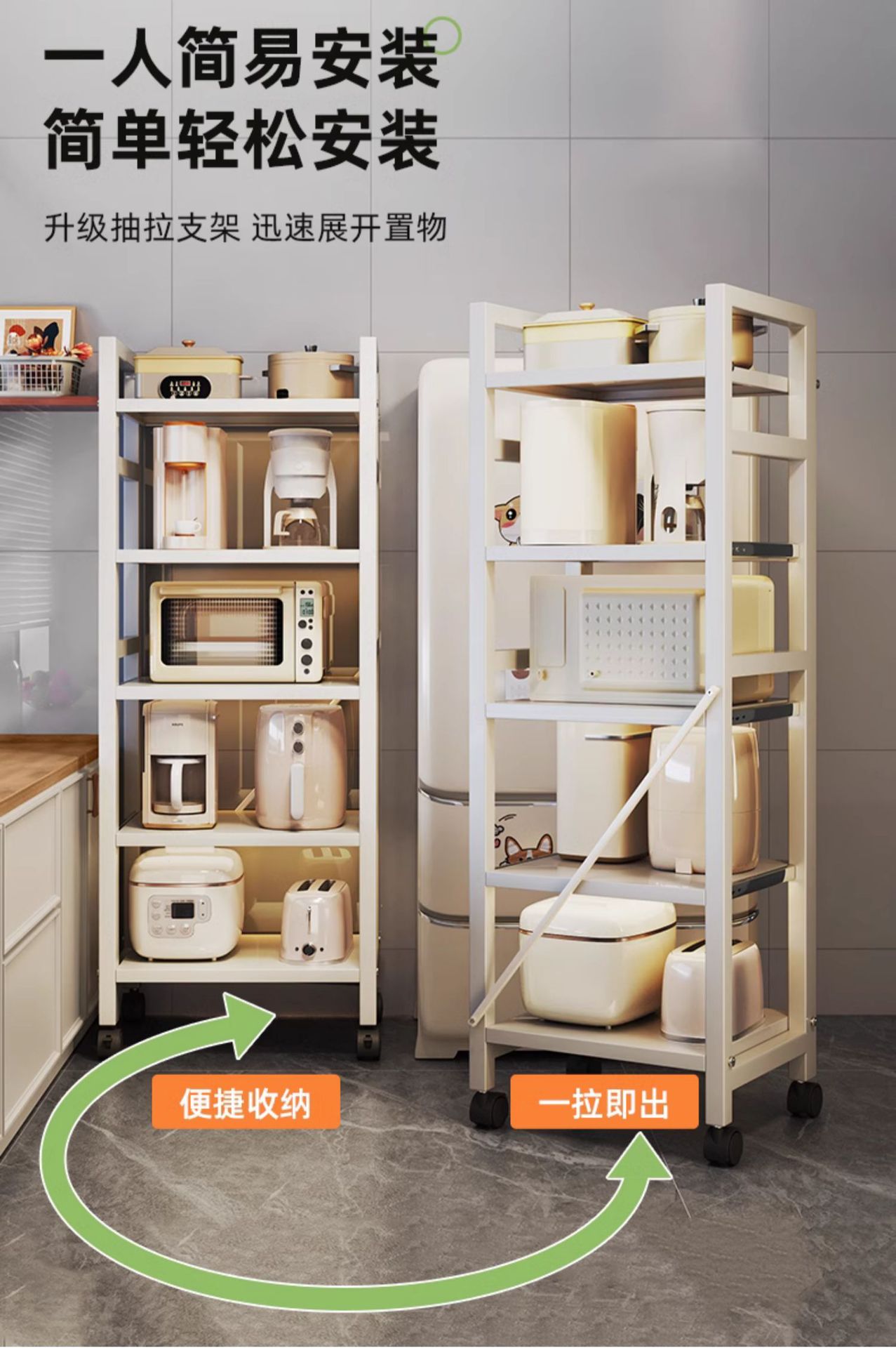 전자레인지 오븐 슬롯 주방 냄비 보관함 다층 바닥 스탠딩 풀아웃 냄비 용품 보관함 선반