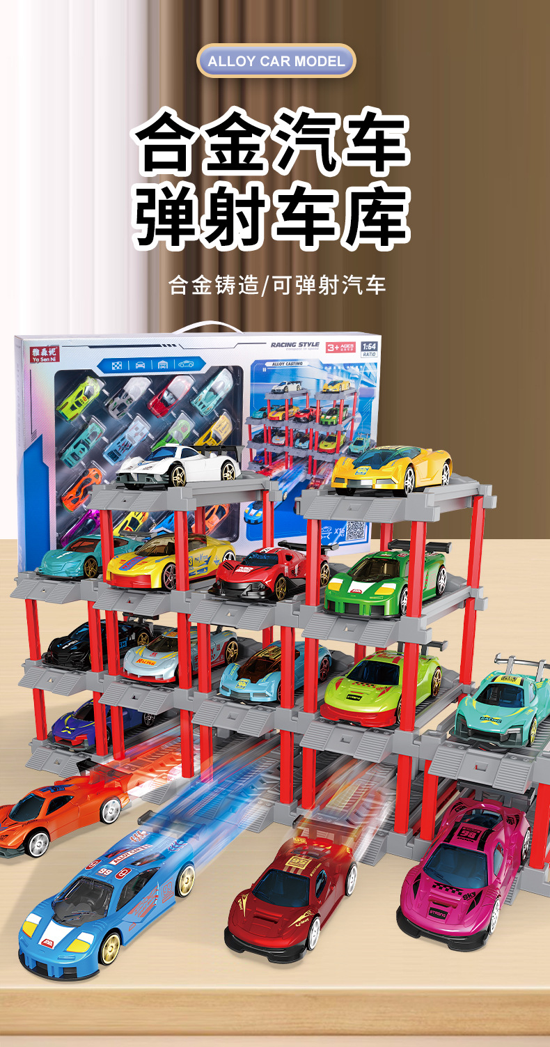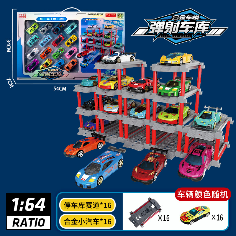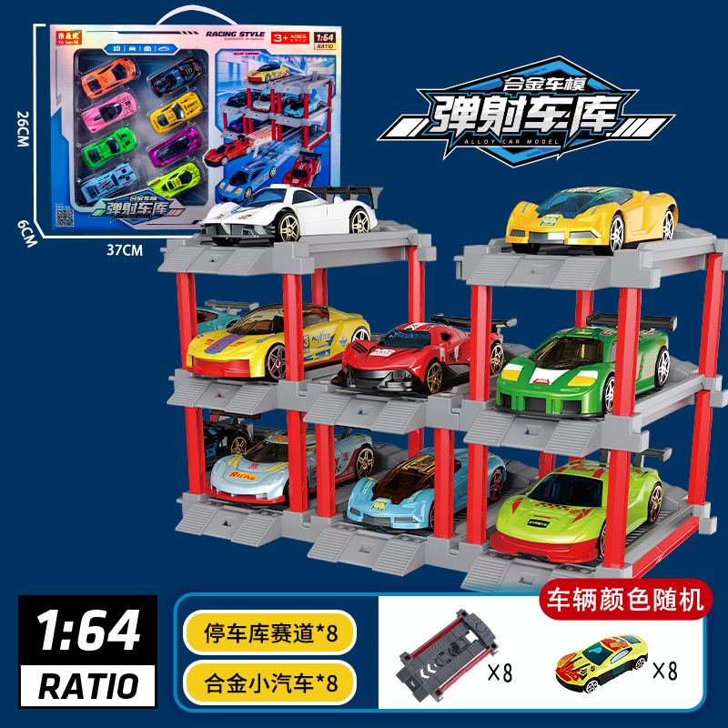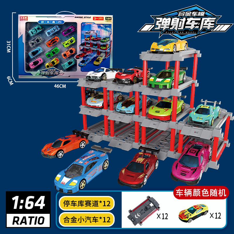 어린이 합금 자동차 발사 차고 관성 슬라이딩 레이싱 모델 소년 시뮬레이션 자동차 교육 장난감 선물 상자