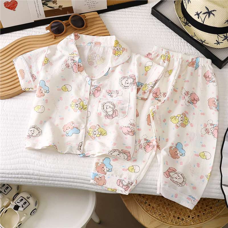 아동 잠옷 세트 여름 새 스타일 소녀의 얇은 반팔 바지 아기 에어컨 옷 소년의 가정 옷 아동 의류스토어 가기