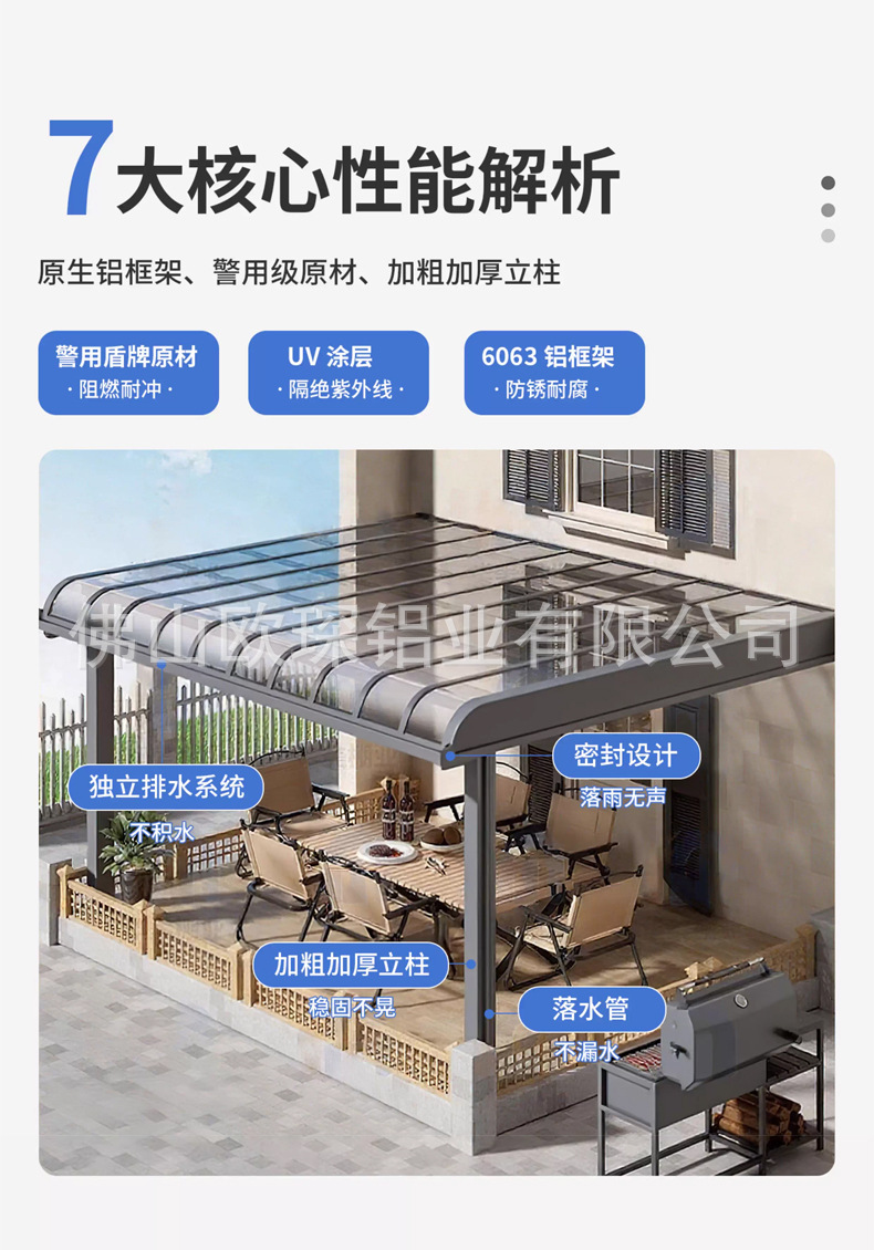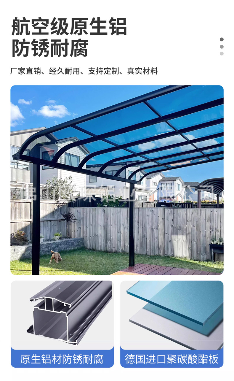 알루미늄 합금 차양막, 야외 방수 발코니, 가정용 빌라 마당 처마, 햇빛 가리개, 지붕 투명 차양막