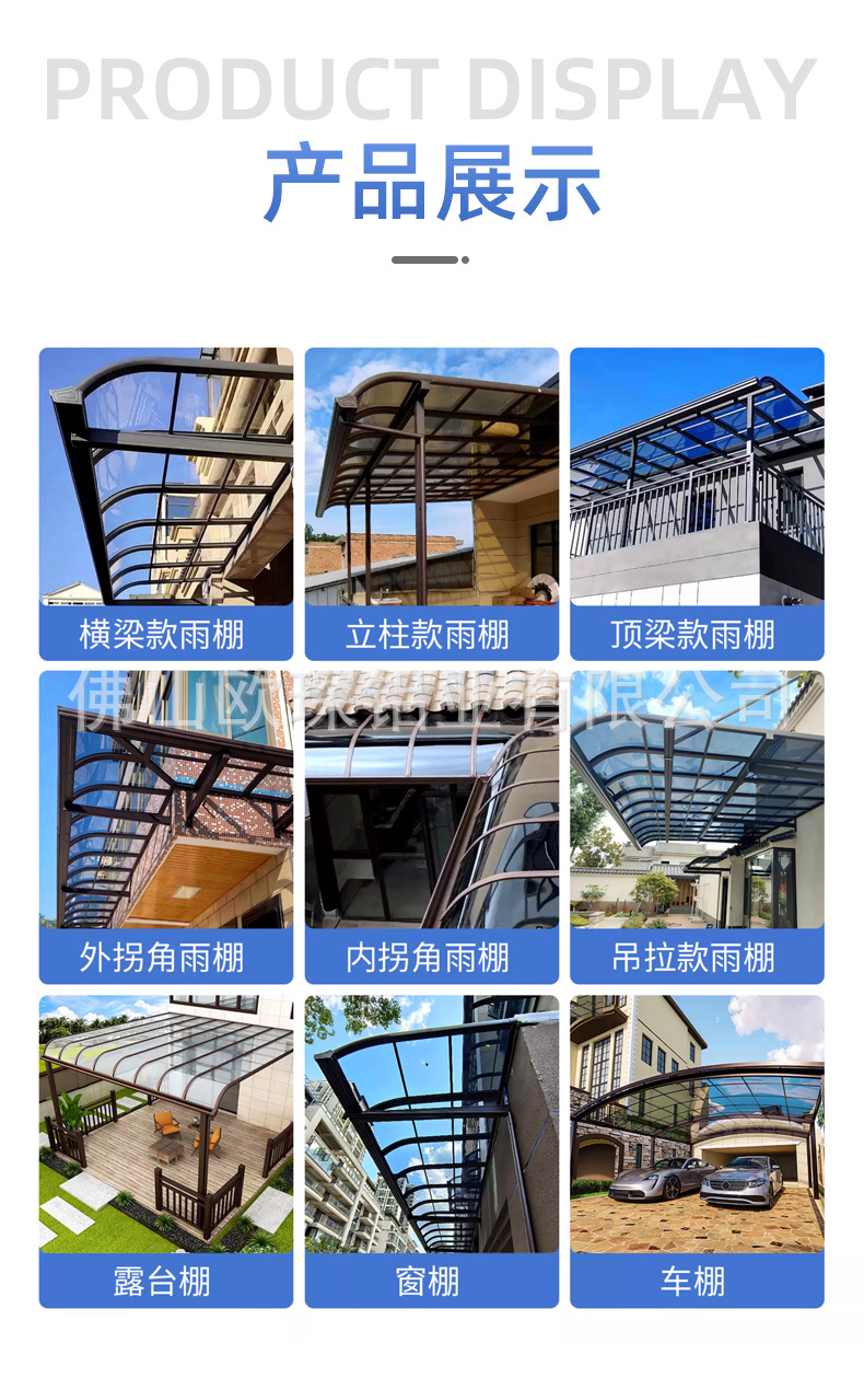 알루미늄 합금 차양막, 야외 방수 발코니, 가정용 빌라 마당 처마, 햇빛 가리개, 지붕 투명 차양막스토어 가기
