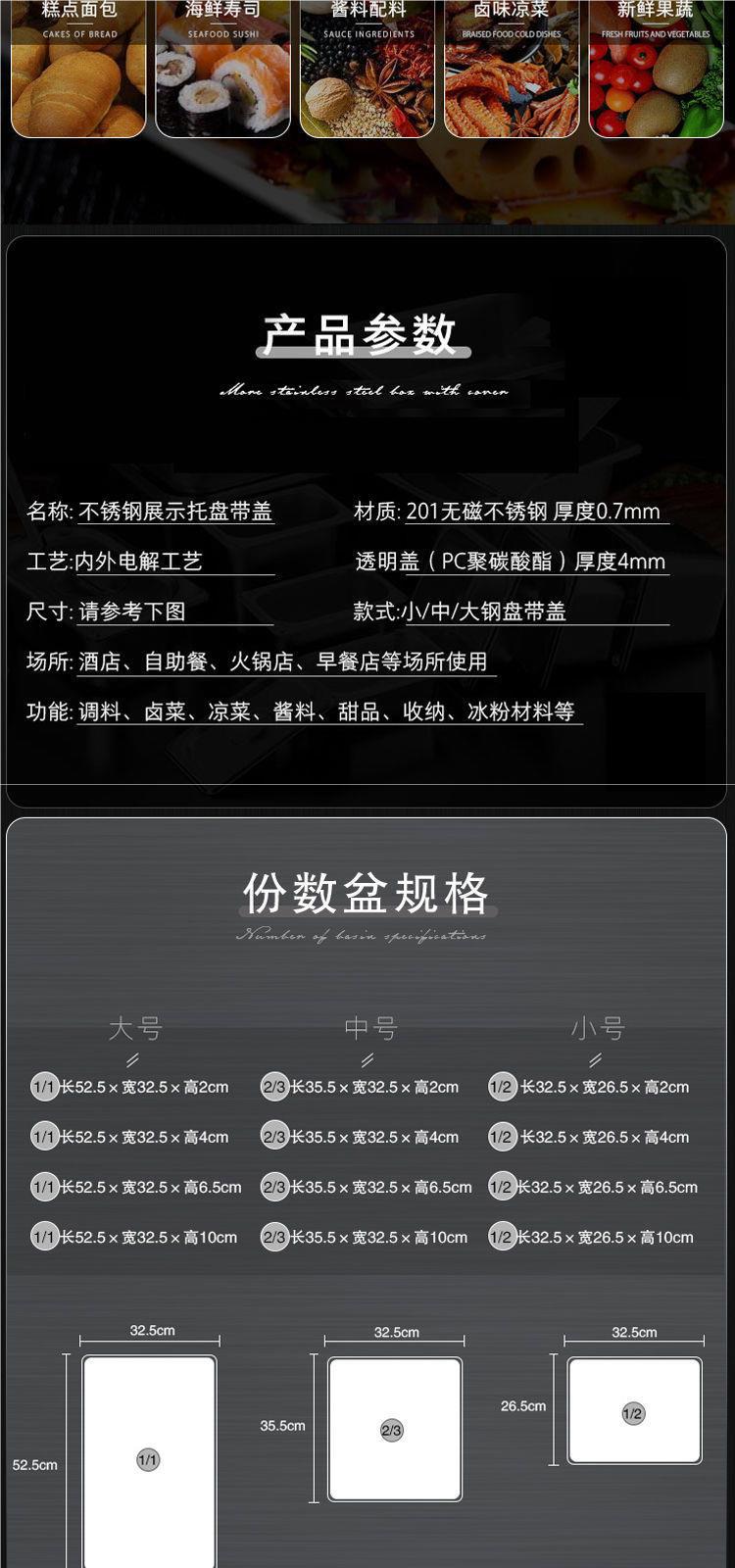 뚜껑이 있는 스테인리스 트레이, 절인 야채, 차가운 야채, 조리된 음식 보존 상자, 뷔페 조리된 음식, 차가운 접시, 조미료, 패스트푸드 디스플레이