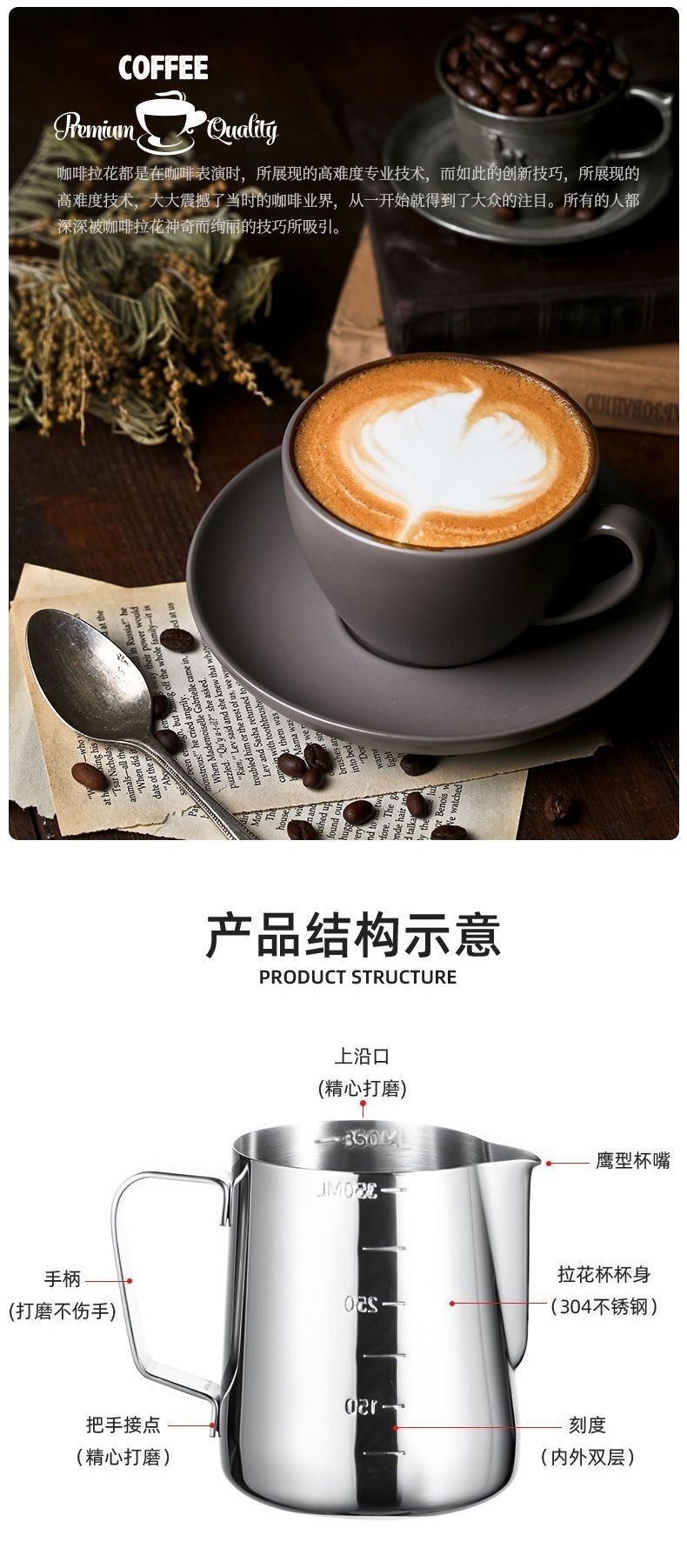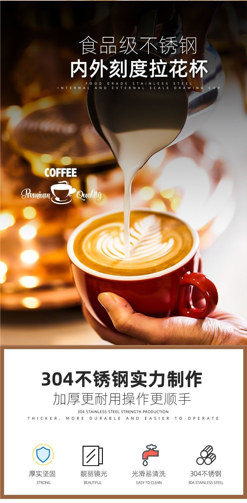 커피 라떼 아트 컵, 라떼 아트 실린더, 스테인레스 스틸 라떼 아트 커피 기구, 눈금이 있는 뾰족한 입 우유 거품 컵