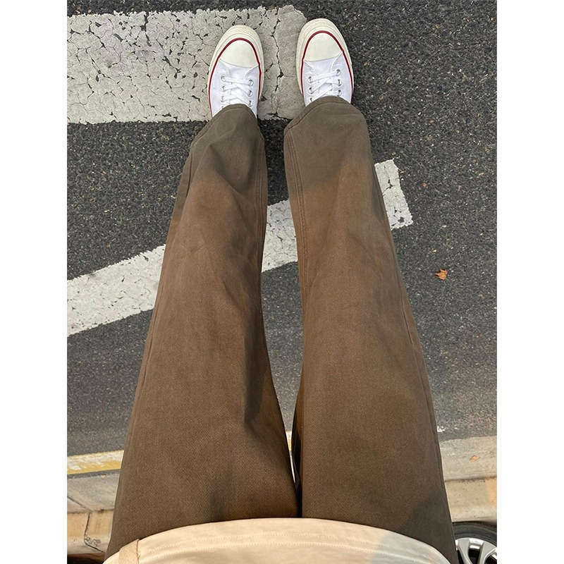 메일라드 워싱 브라운 청바지 남성 봄 여름 아메리칸 하이 스트리트 바이브 팬츠 레트로 루즈 와이드 팬츠