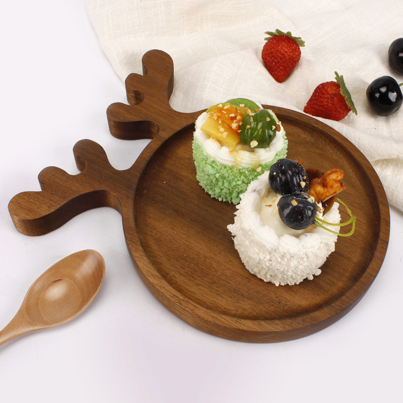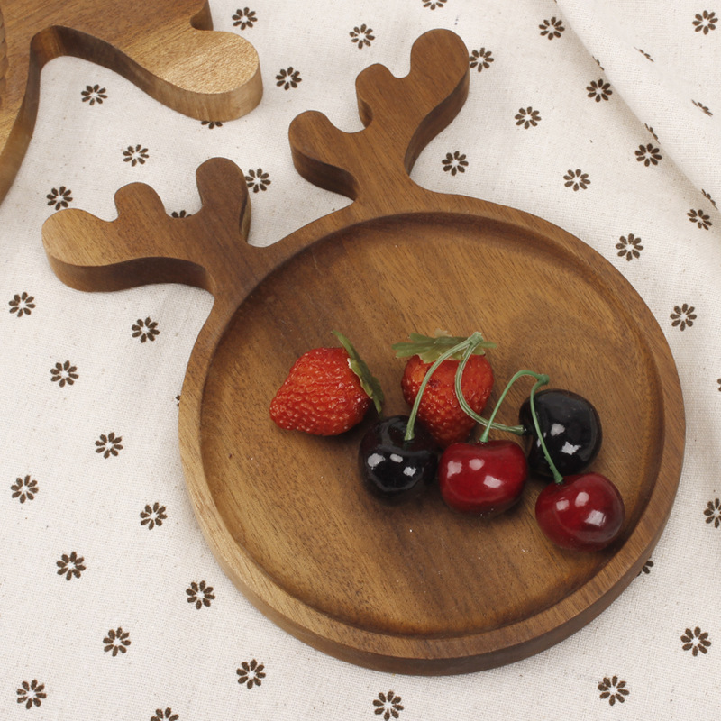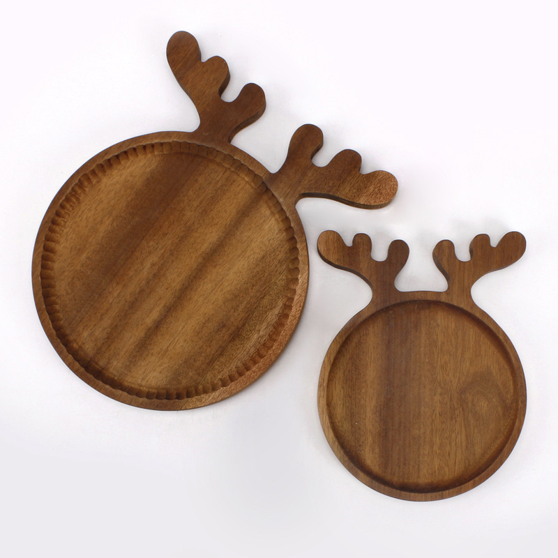 나무 뿔 트레이 크리스마스 파티 디너 트레이 단단한 나무 과일 트레이 스낵 말린 과일 트레이 아카시아 나무 엘크 트레이스토어 가기