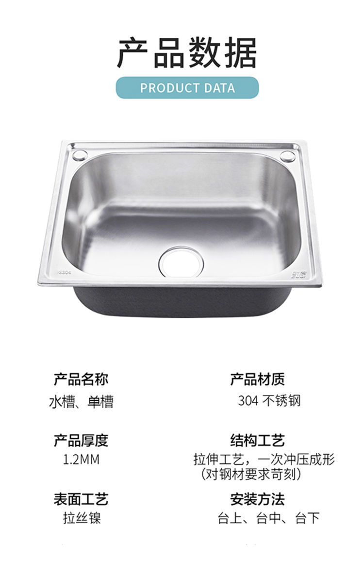 싱크대 두꺼운 304 스테인레스 스틸 단일 슬롯 일체형 가정용 주방 크기 단일 슬롯 식기 세척 싱크대스토어 가기