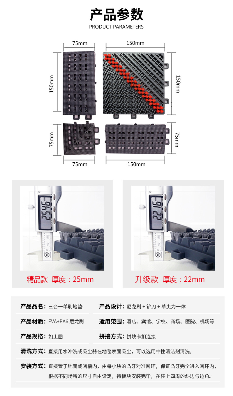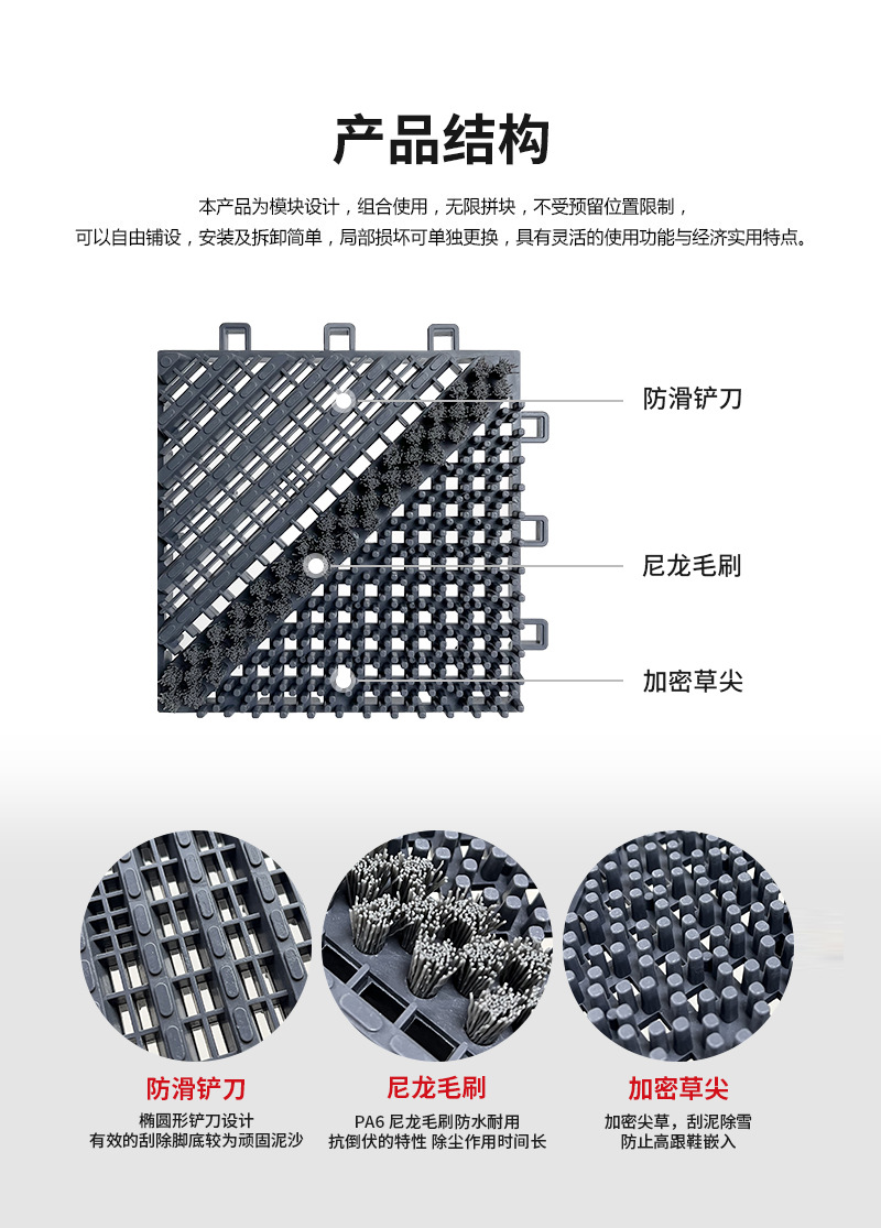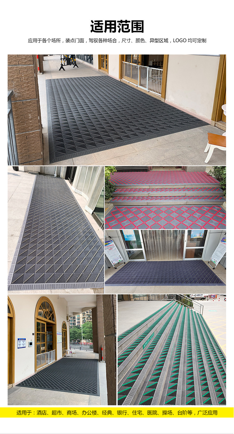 3-in-1 바닥 매트, 야외 쇼핑몰, 호텔 먼지 제거 도어 매트, 얼룩 방지 미끄럼 방지 매트, 플라스틱 접합 도어 매트