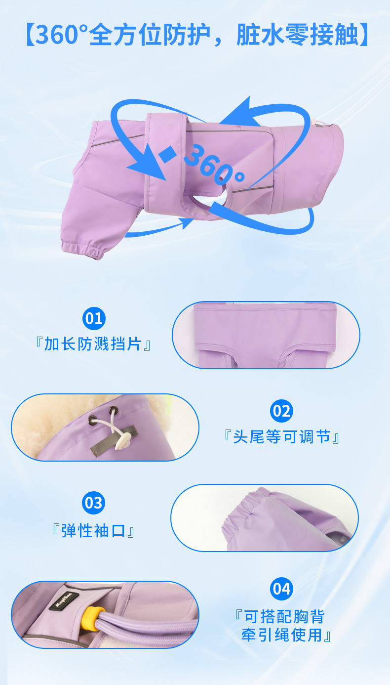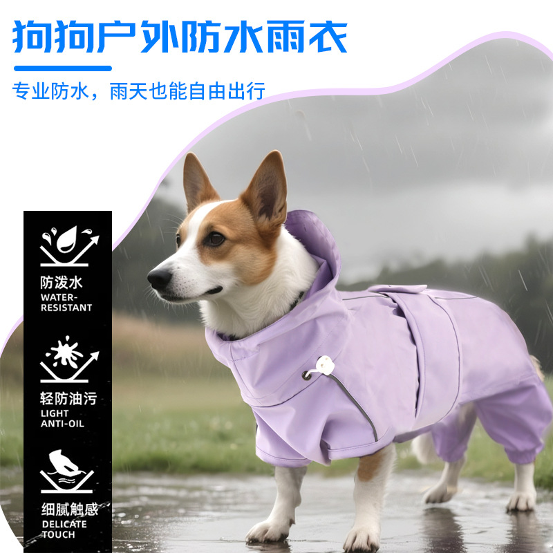 네 다리 개 비옷 방수 야외 애완 동물 용품 조정 가능한 고양이와 개 옷 견인 애완 동물 방풍 코트