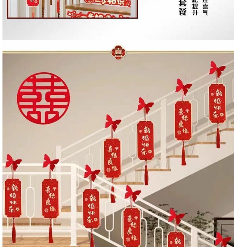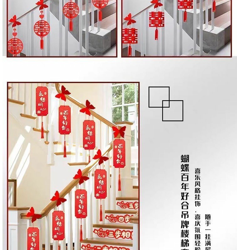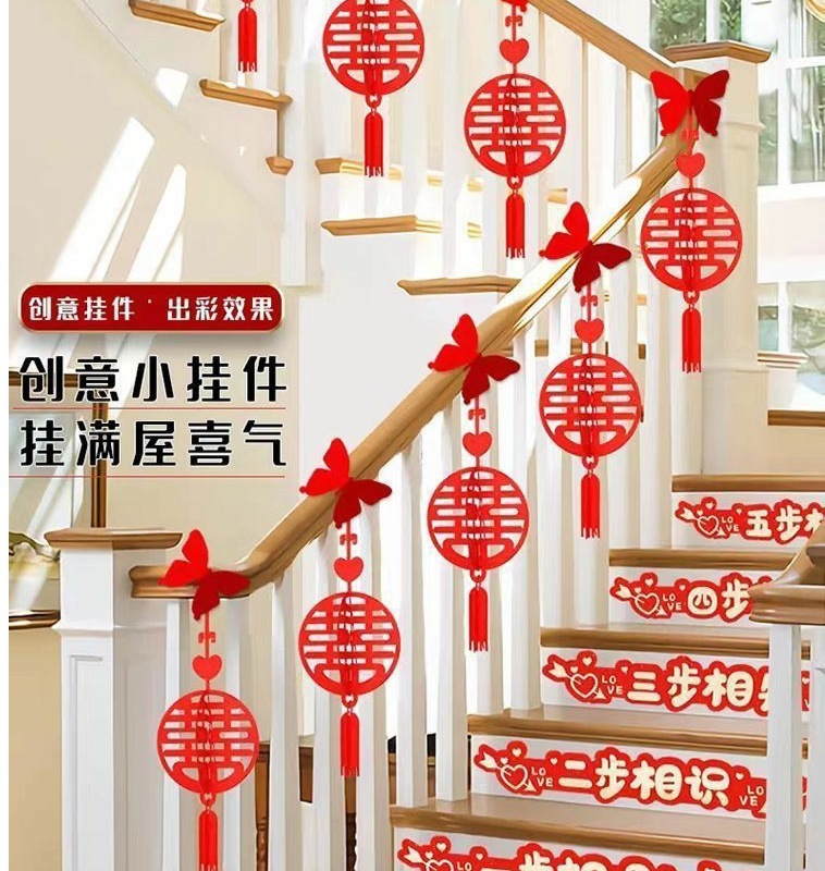 계단 난간 장식 웨딩 펜던트 웨딩 룸 웨딩 해피 워드 펜던트 레이아웃 농촌 새 집 거실 펜던트 세트
