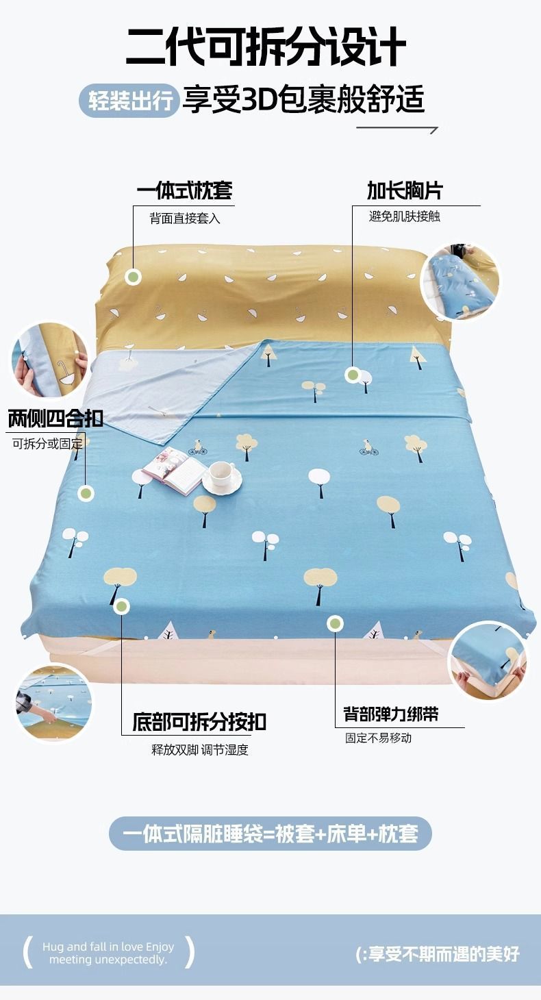 새로운 순면 호텔 더티 침낭 여행 및 출장 올인원 4피스 세트 싱글 휴대용 2세대 분리 가능스토어 가기
