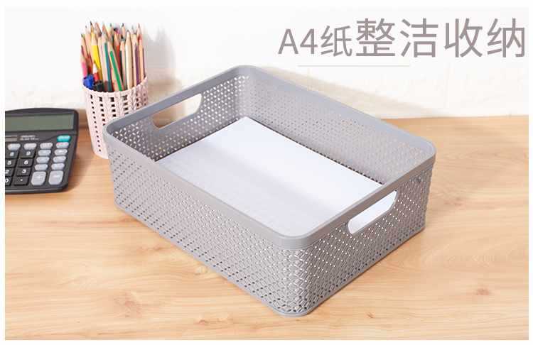 뚜껑이 없는 플라스틱 보관 상자 데스크탑 정리 상자 A4 종이 보관 바구니는 직사각형 두꺼운 대형 잔해물 바구니와 함께 쌓을 수 있습니다.스토어 가기