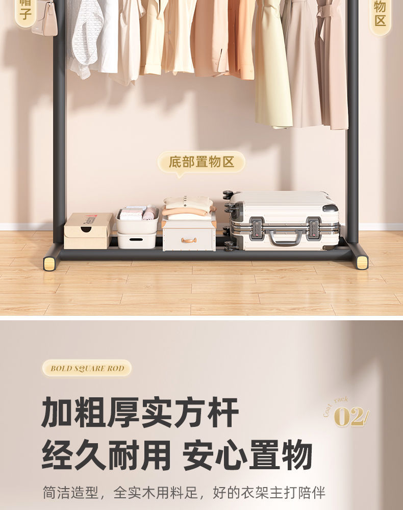 단단한 나무 옷걸이, 가정용 바닥걸이형 옷걸이, 현관문 수직 옷걸이, 실내 간이 나무 옷걸이