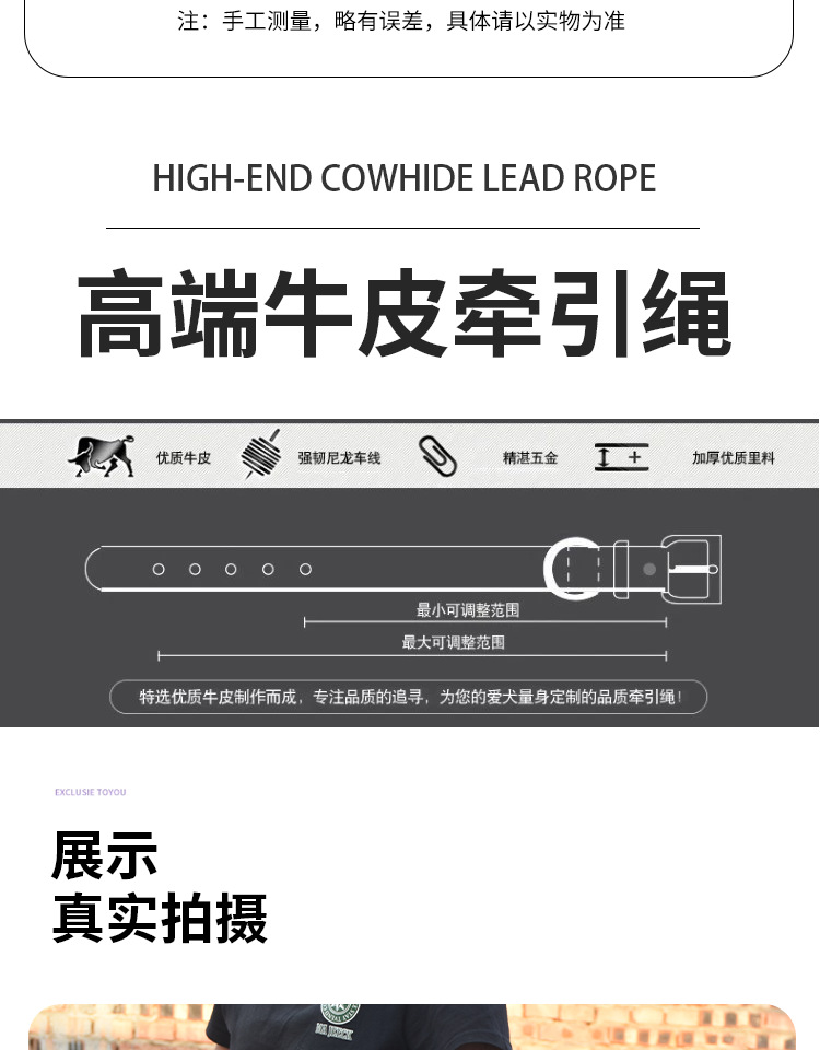 • 블랙 1.3m 소가죽 견인 로프/스트립