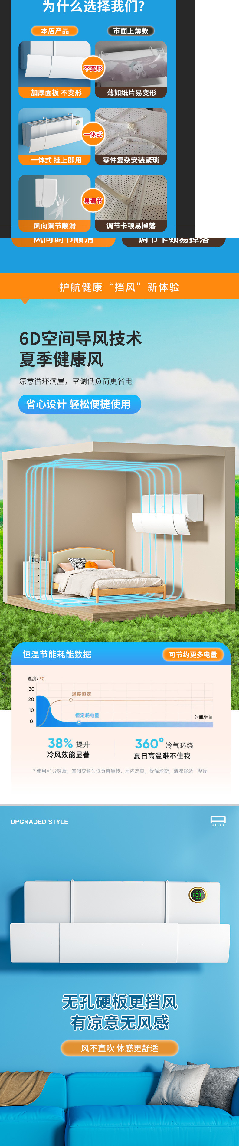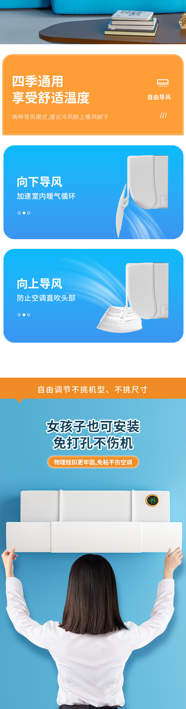에어컨 윈드 디플렉터, 직풍 방지 베젤, 에어컨 공기 배출구 커튼, 벽걸이형 윈드 디플렉터, 범용 산후 설치 불필요스토어 가기
