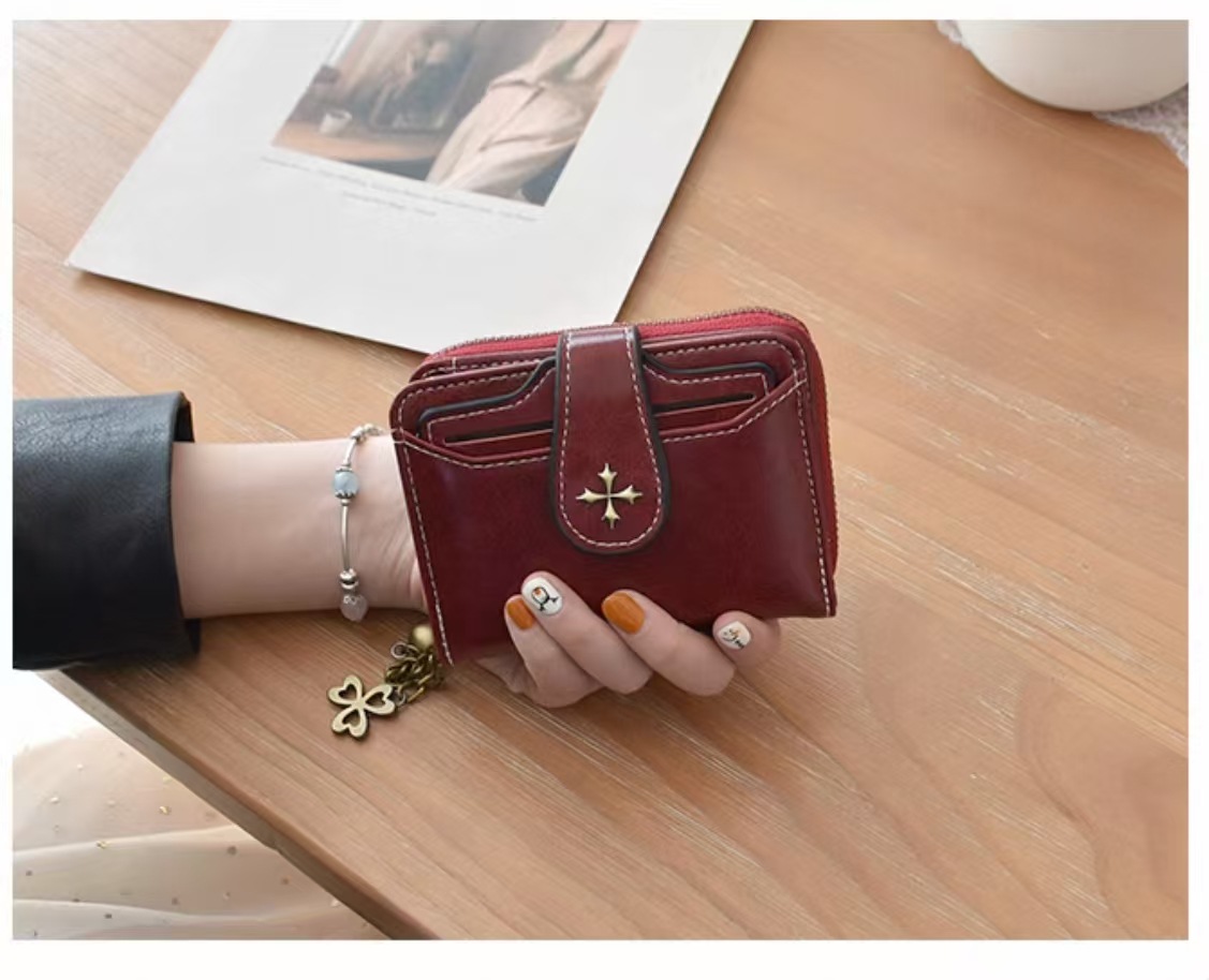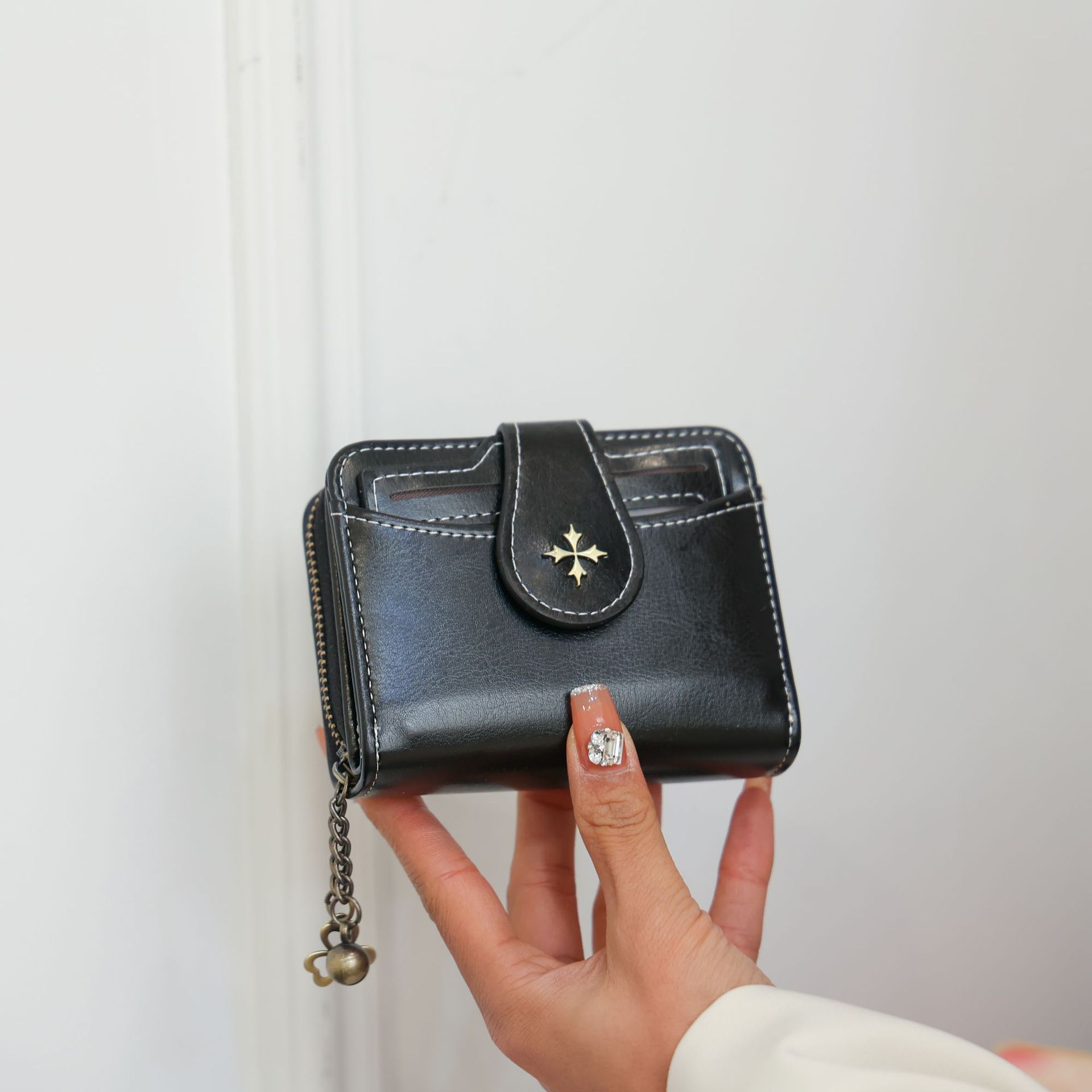 미니백, 심플하고 개성있는 남녀공용 숏지갑, 레트로 스타일 지퍼 동전지갑, 다기능 운전면허증 지갑