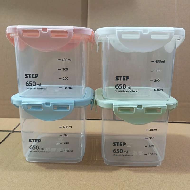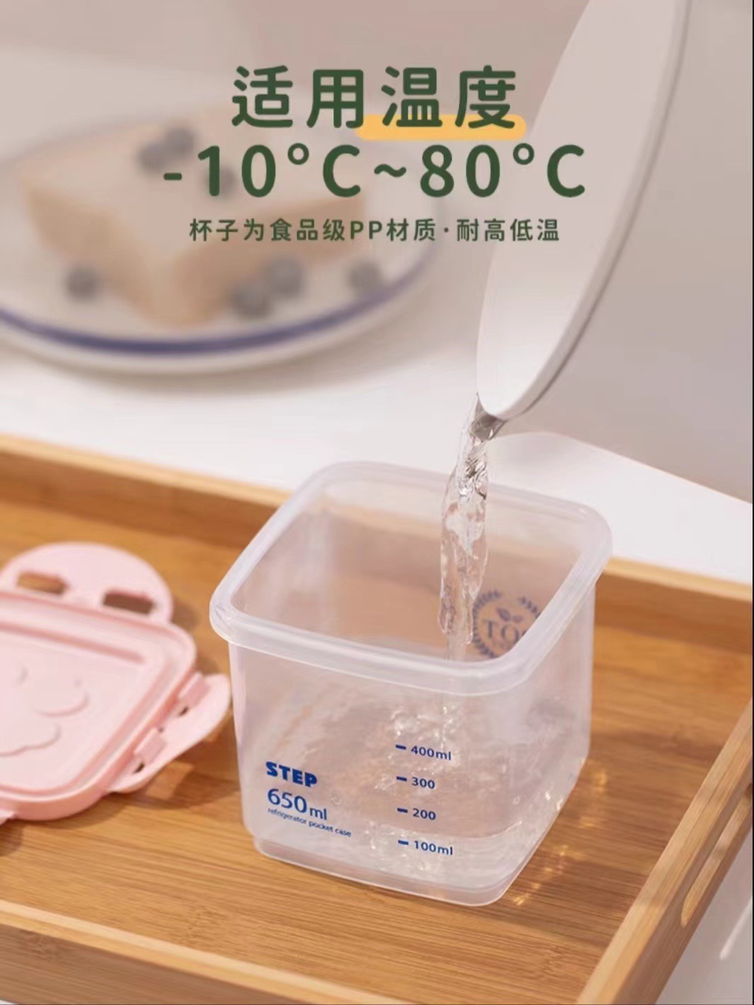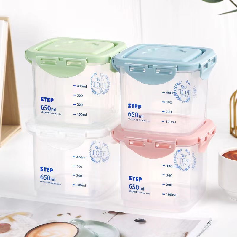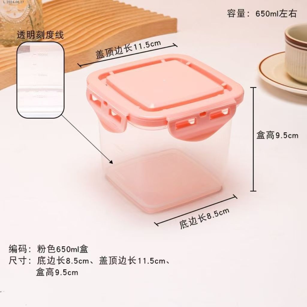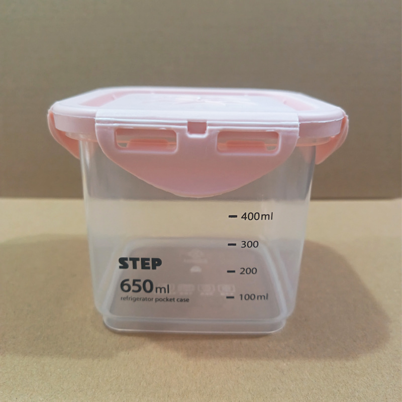 • 정사각형 650ML [분홍색 뚜껑] 회색 눈금이 인쇄되어 있음