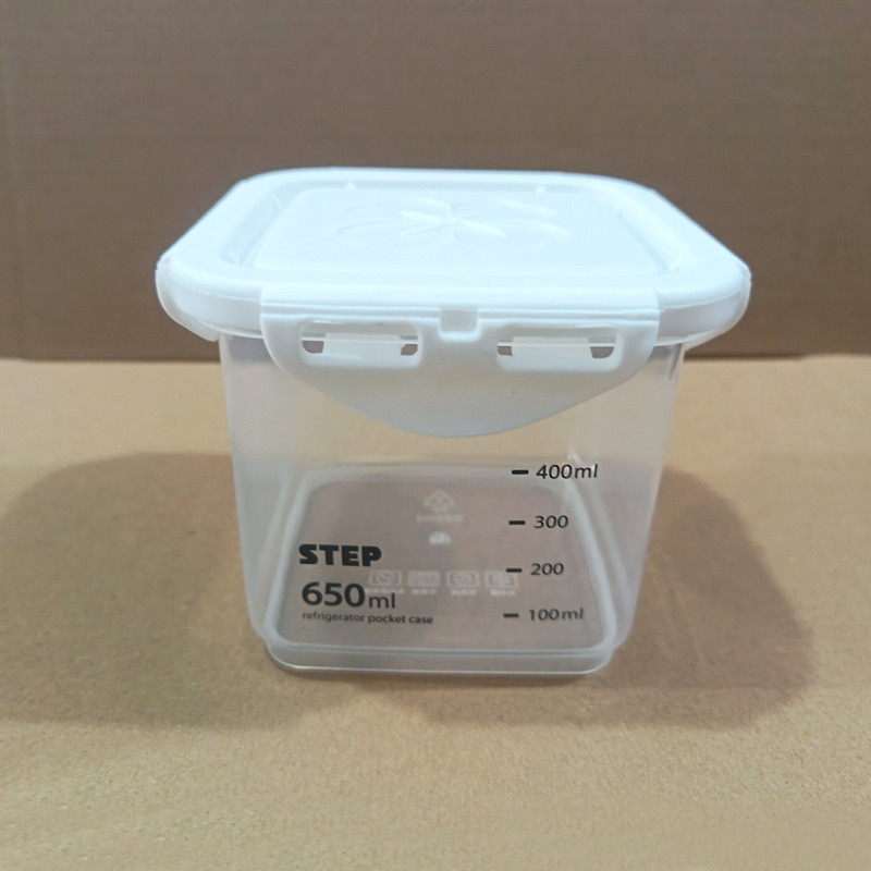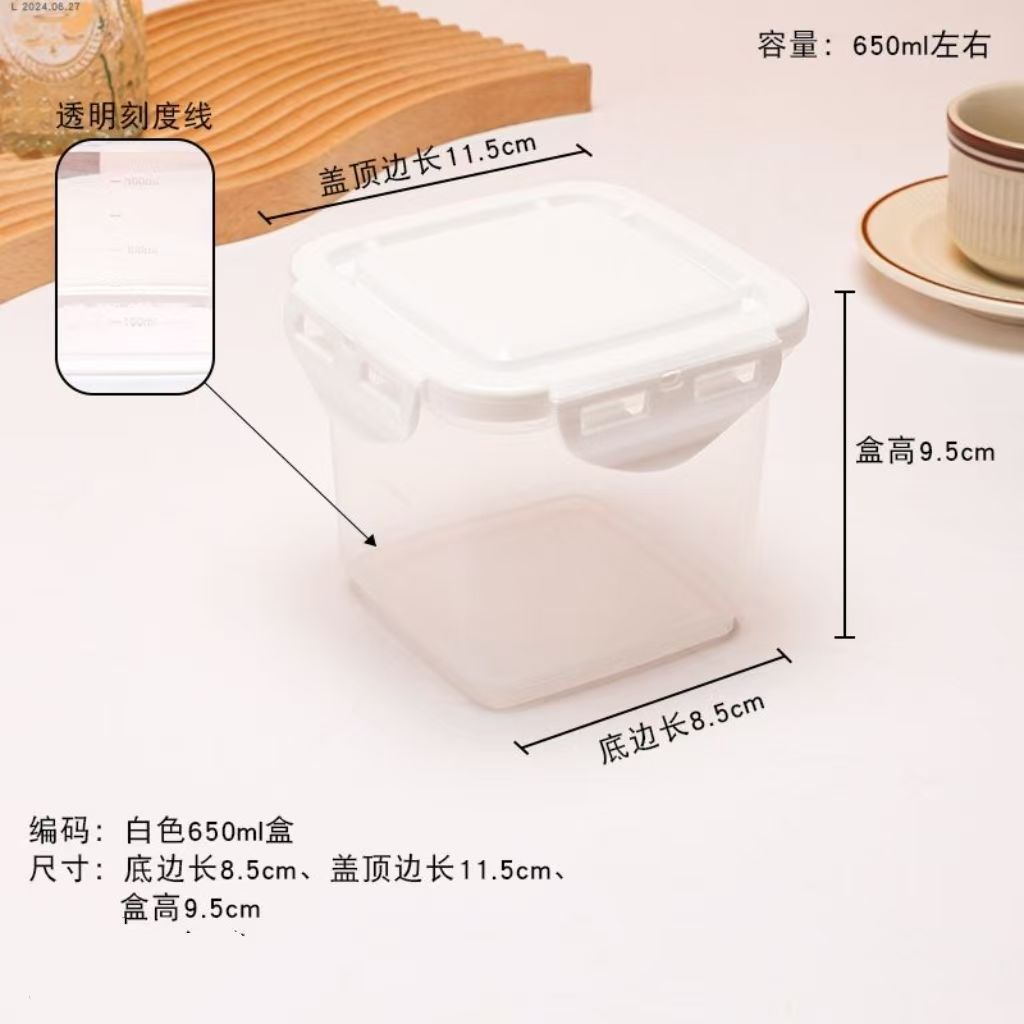 • 정사각형 650ML [흰색 뚜껑] 회색 눈금이 인쇄되어 있음