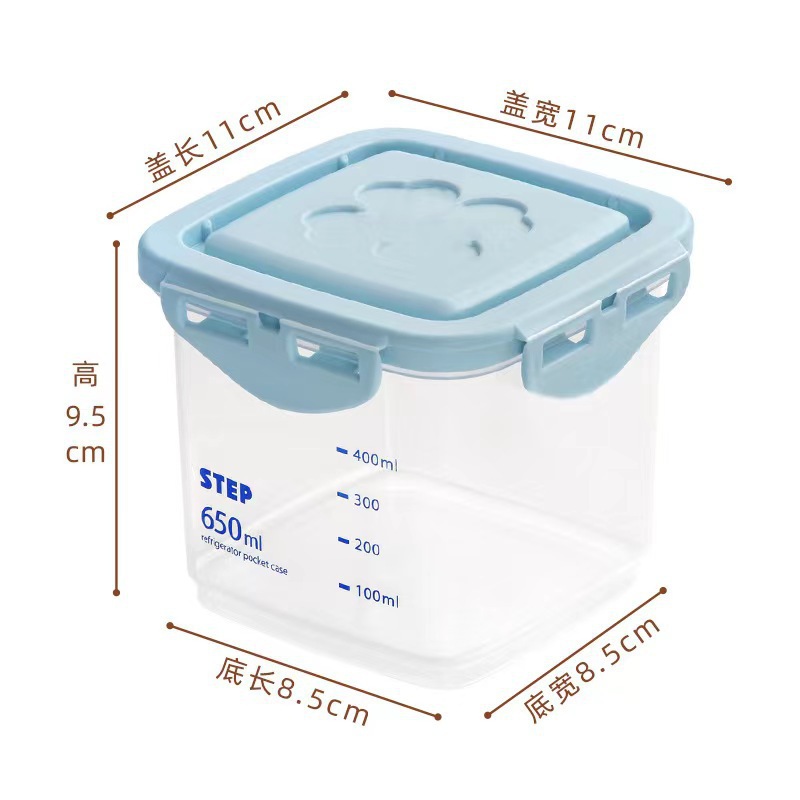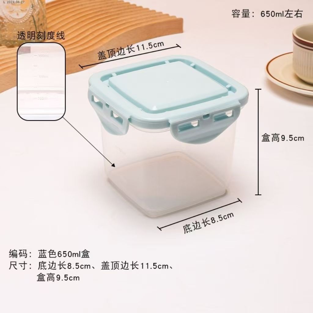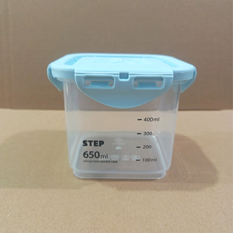 • 정사각형 650ML [파란색 뚜껑] 회색 눈금이 인쇄되어 있음