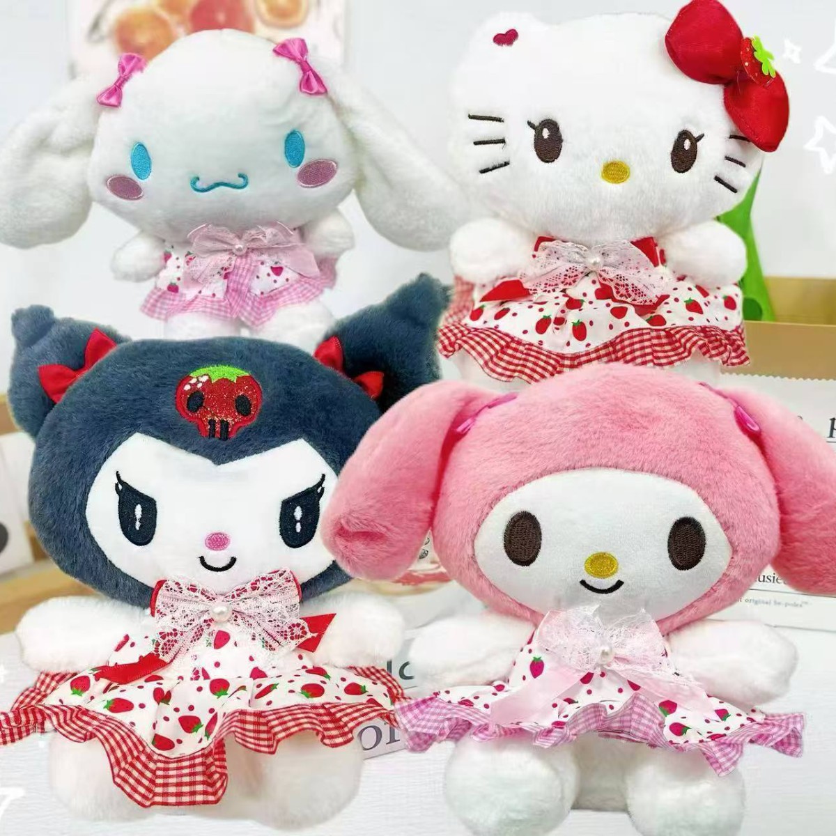 쿠로미 플러시 장난감 귀여운 소녀 베개 꽃 드레스 멜로디 인형 계피 개 인형 인형스토어 가기