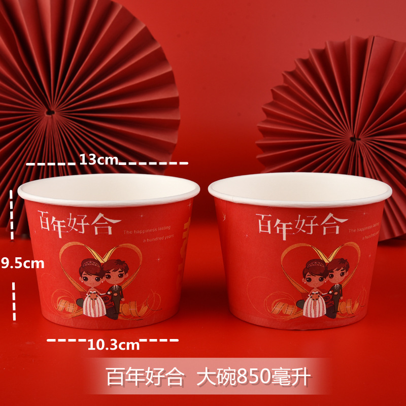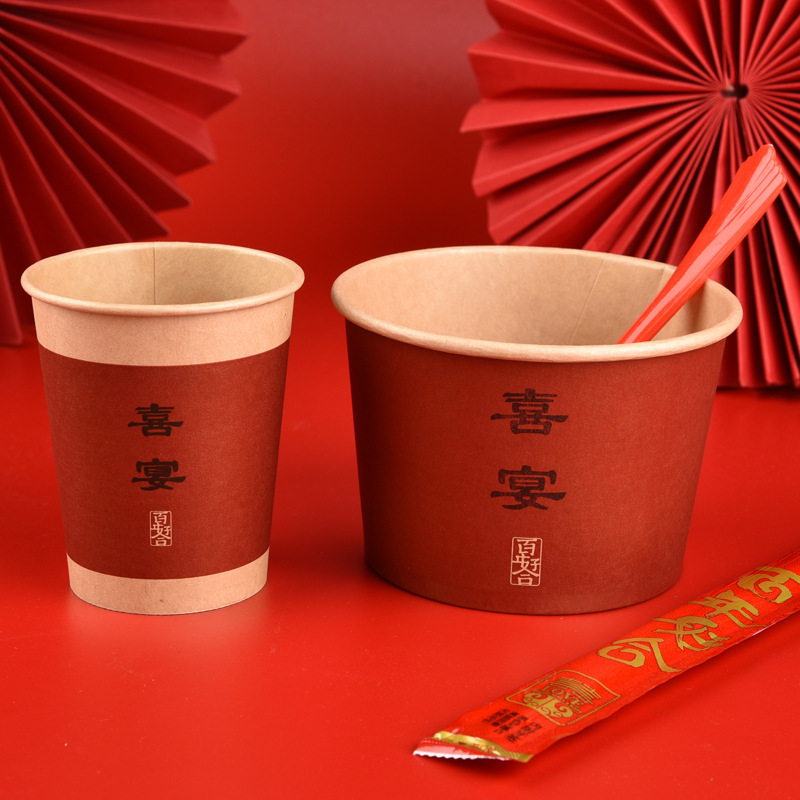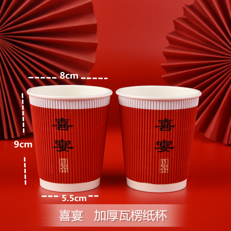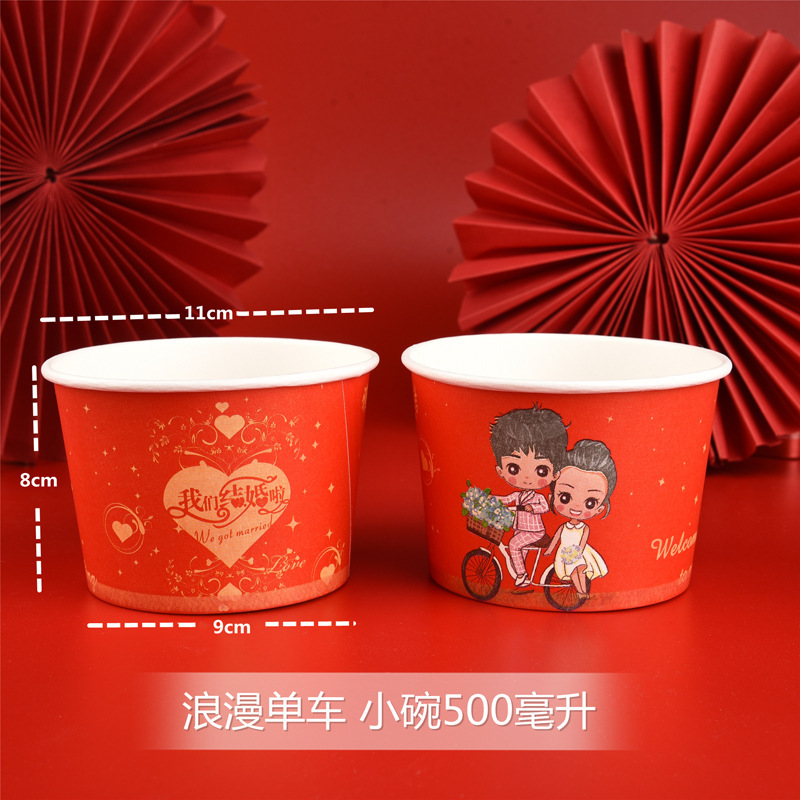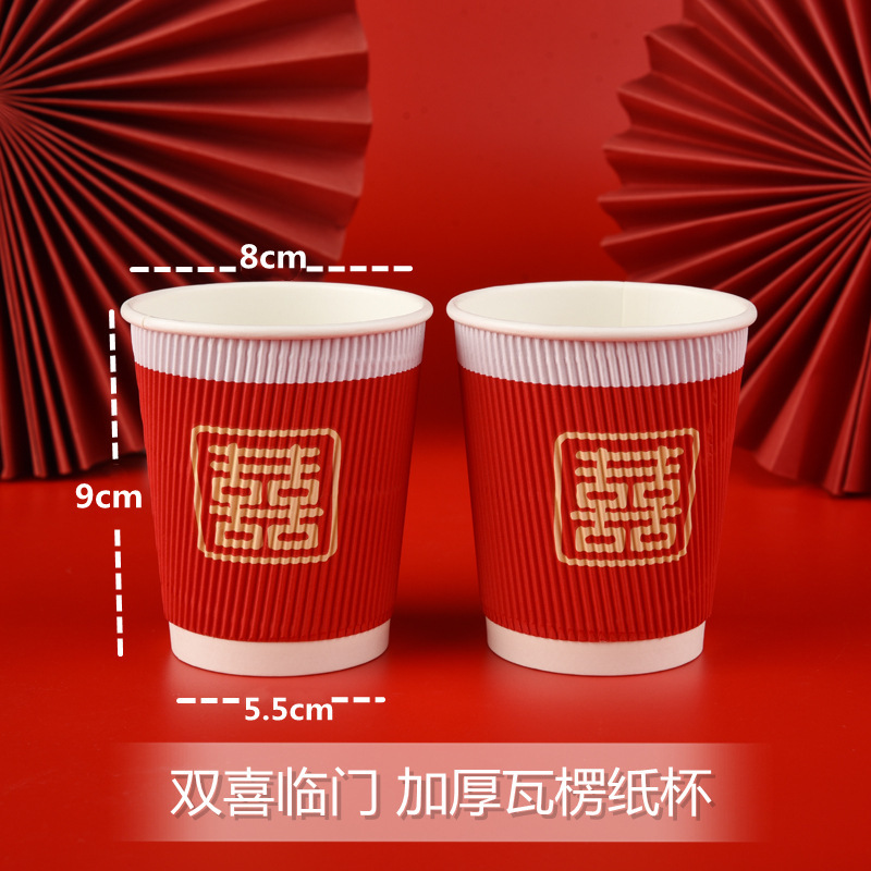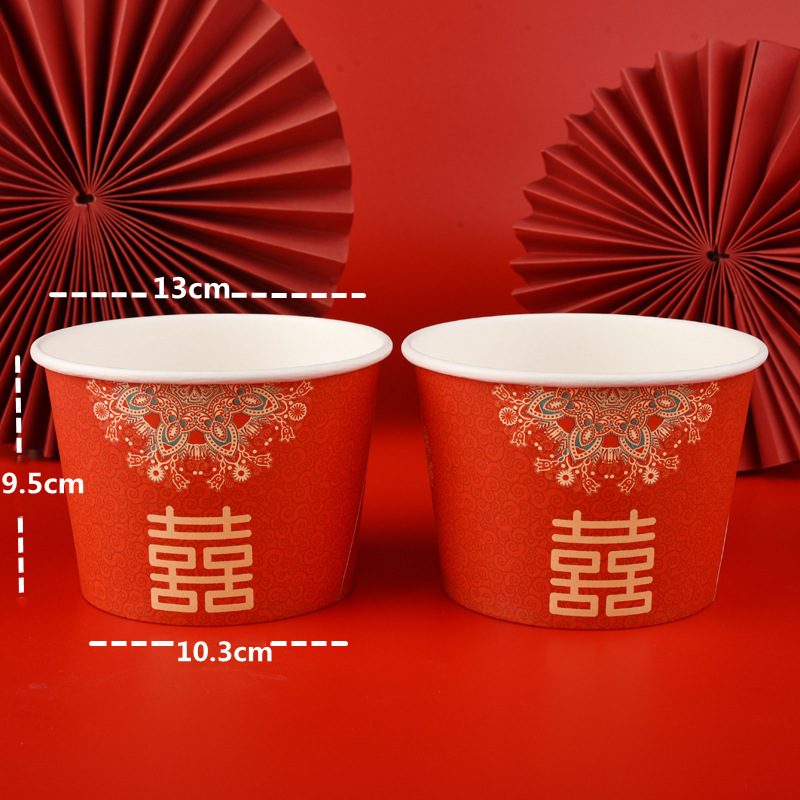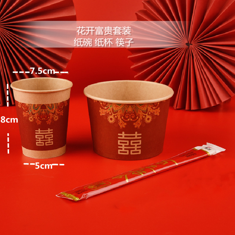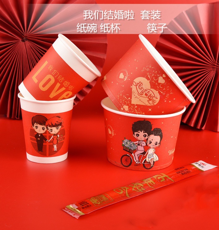 결혼식 일회용 빨간 종이 그릇 두꺼운 결혼식 그릇 결혼식 연회 연회 축제 종이 컵 그릇과 젓가락 세트 결혼식을위한스토어 가기