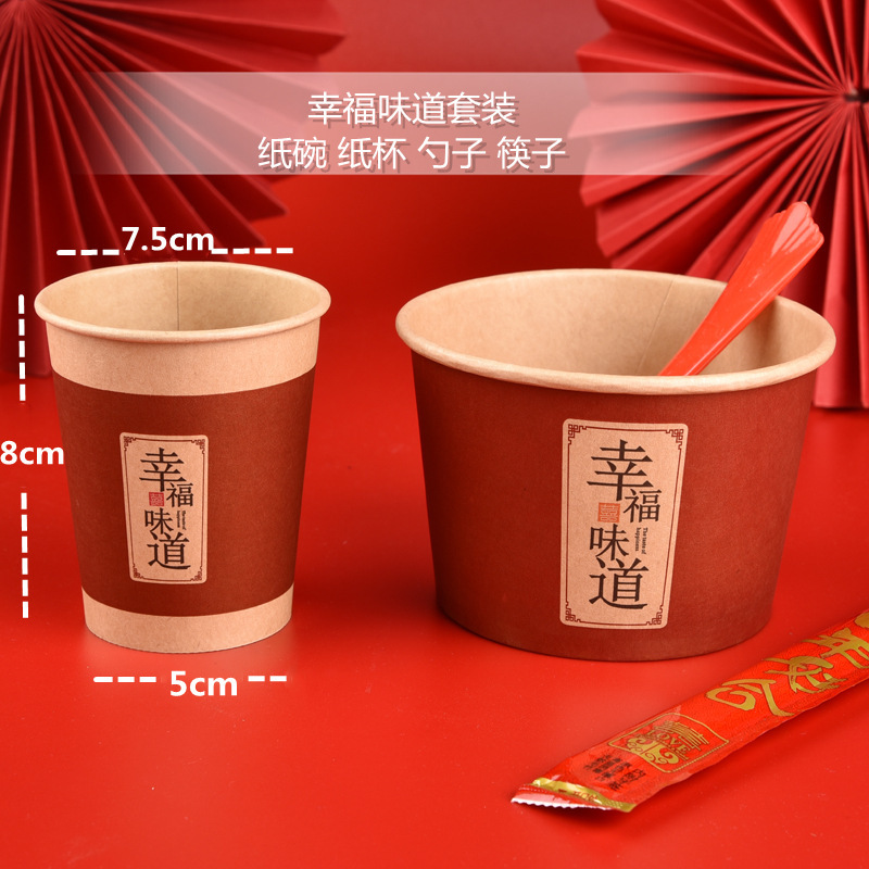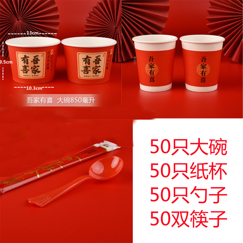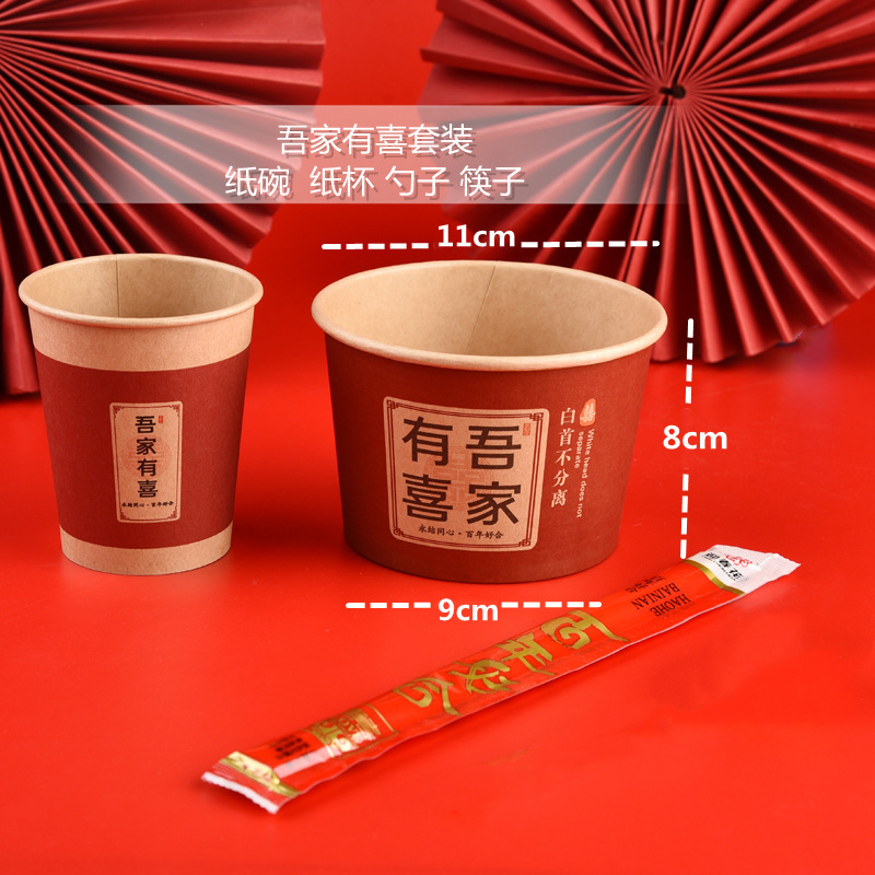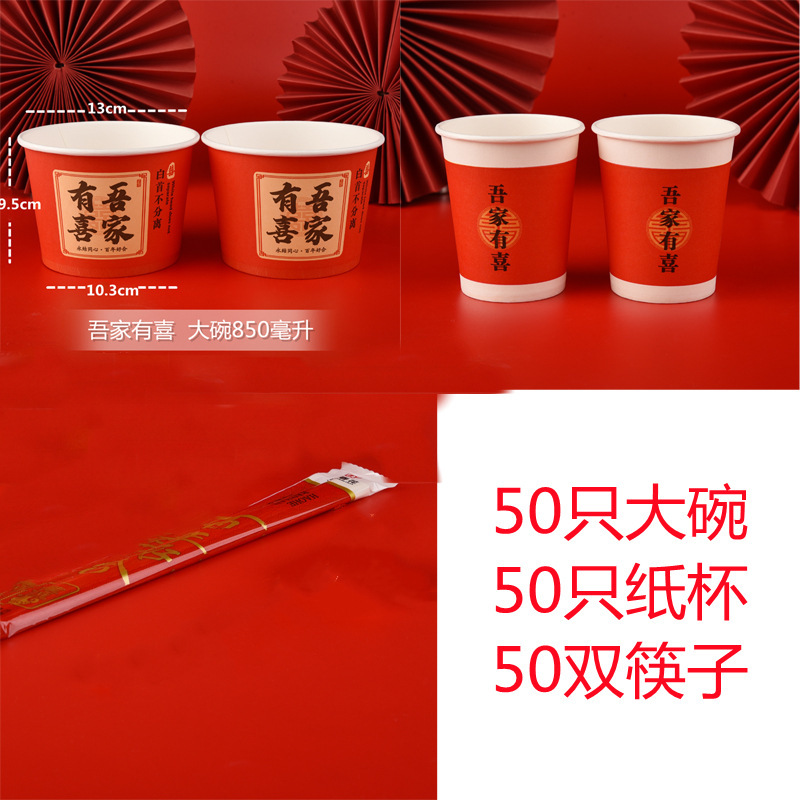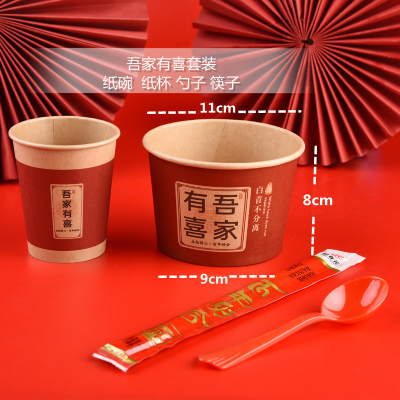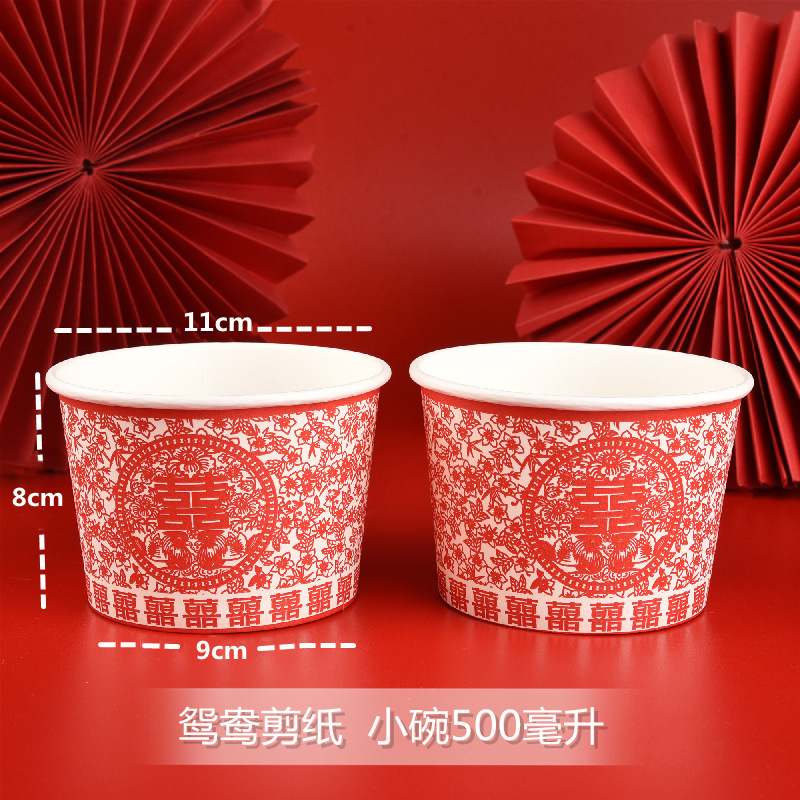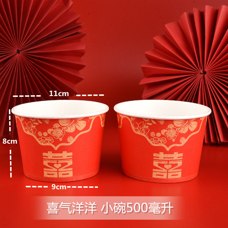 결혼식 일회용 빨간 종이 그릇 두꺼운 결혼식 그릇 결혼식 연회 연회 축제 종이 컵 그릇과 젓가락 세트 결혼식을위한스토어 가기